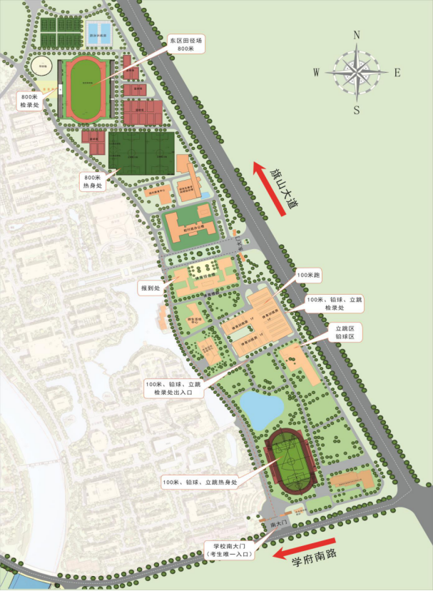 3.考生入校后要遵守校园管理规范,不影响校园教学秩序,不在马路上、路边草坪等非指定区域热身。