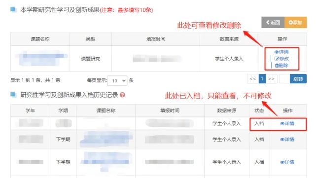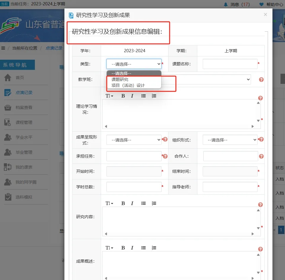 3、研究性学习及创新成果部分课题研究和项目(活动)设计必须填写。