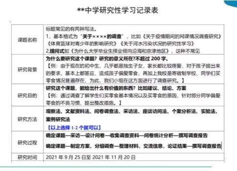 研究性学习及创新成果:(参考下面的例子,课题及内容可以自主选择)