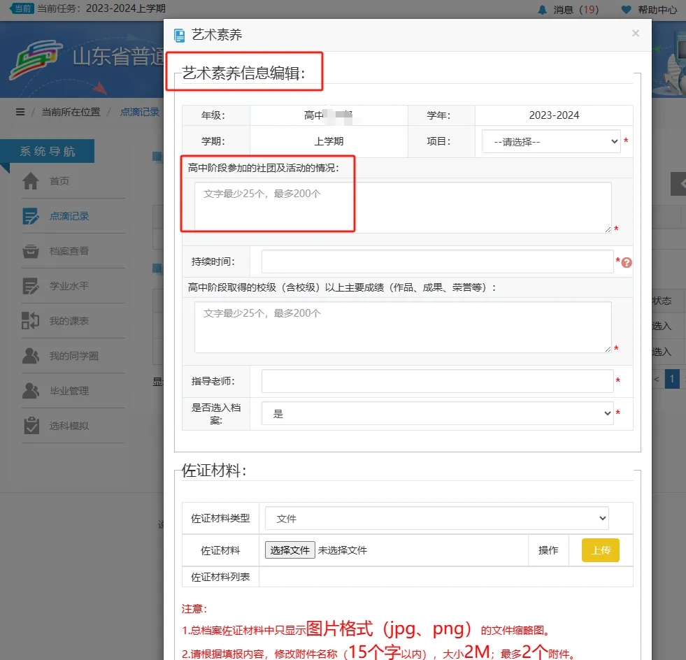 此处所录内容是学生的个人档案,跟学生一辈子,入党、考研、考公考编都要审查,此处材料万勿造假,材料充实有利于学生以后发展,同时也事关毕业和高考。