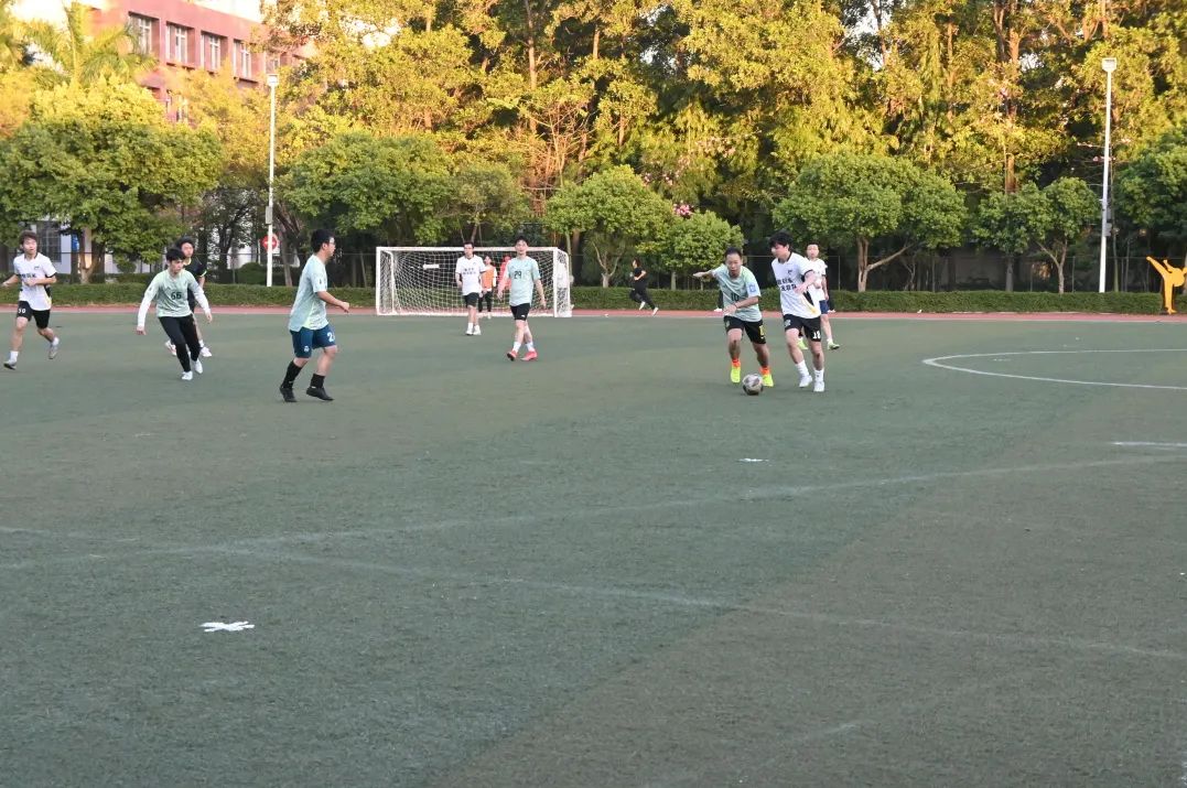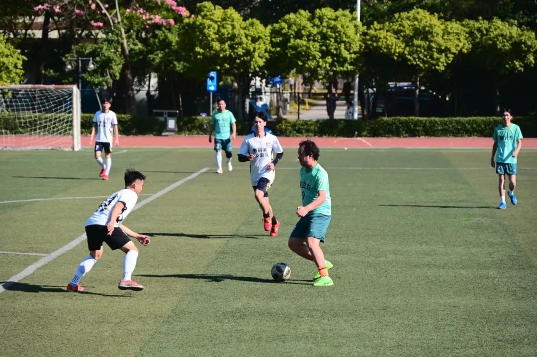 绿茵场上,第二届“校友杯”足球赛激战正酣。来自8个院系16支队伍的校友们身着各队球衣,奔跑追逐,汗水浸湿后背。传球、过人、射门,动作干脆利落,默契尽显。场外亲友团呐喊助威声浪此起彼伏,目光紧锁球场,每一次欢呼都似要冲破云霄,燃爆这青春重聚的赛场。