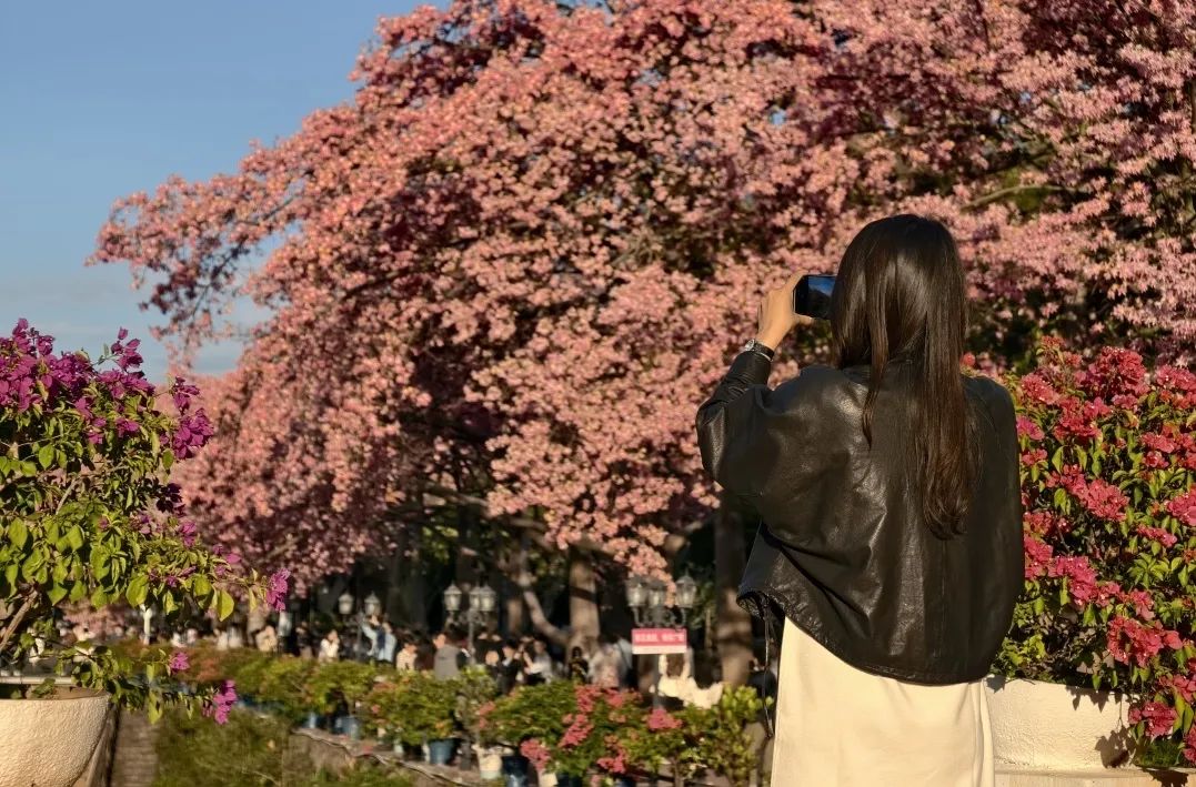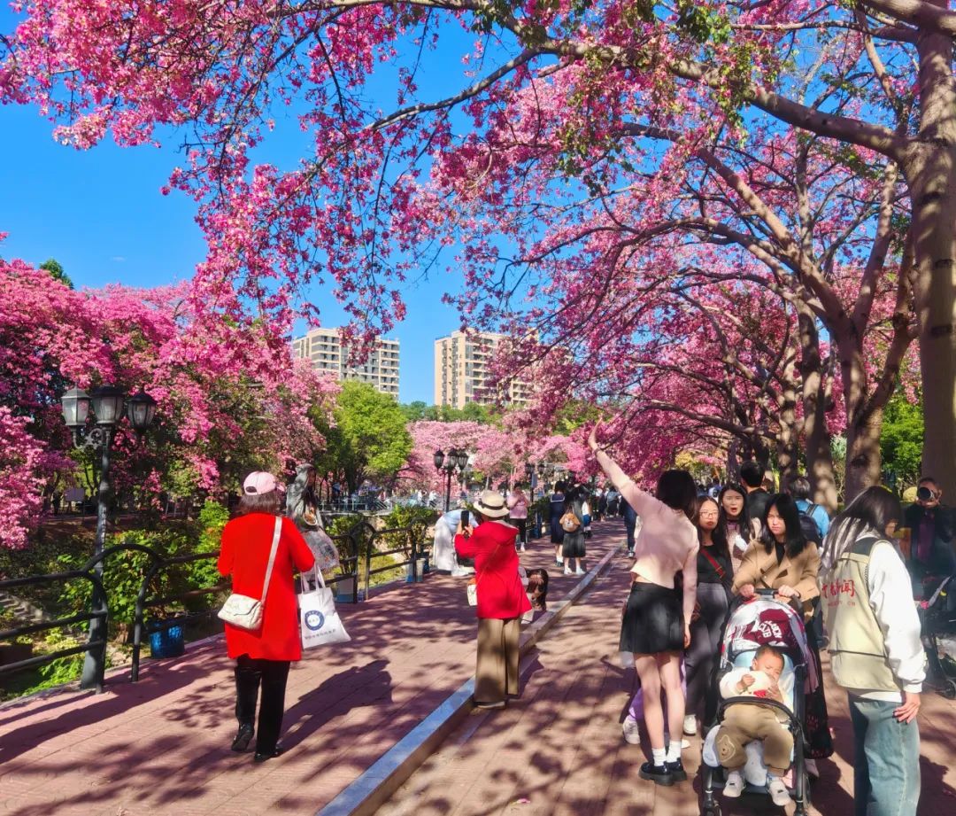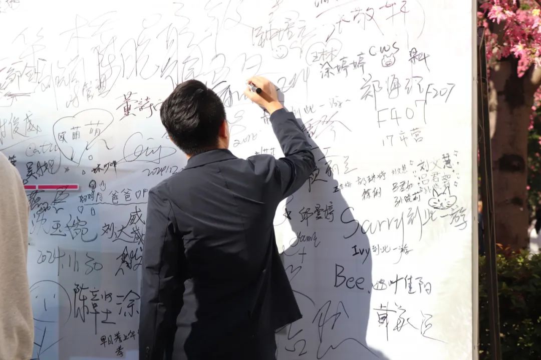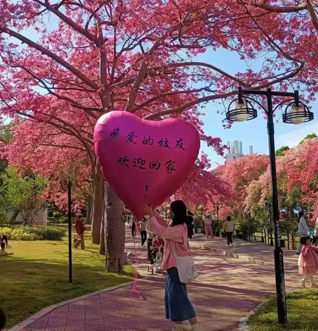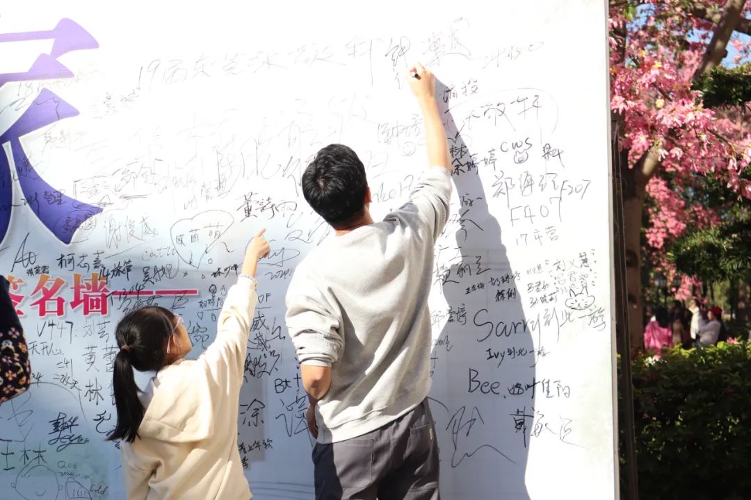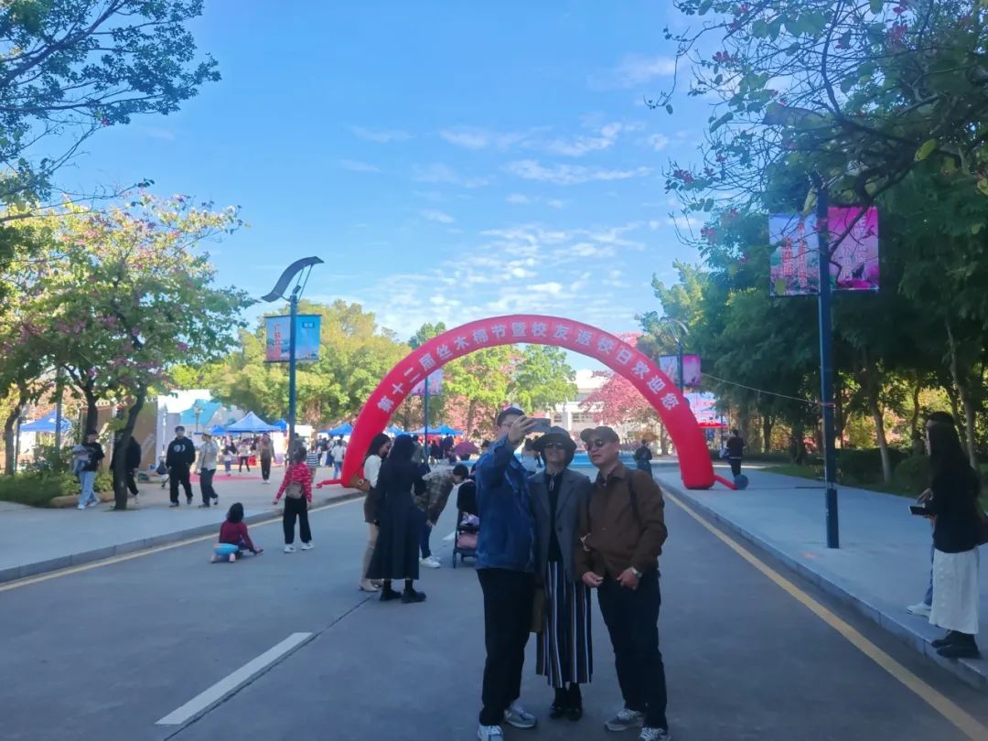 阳光洒满校园小径,大片粉色花海绚烂盛开。伴随着校园广播电视台播放着温情动听的音乐,校友们或结伴同行,或协同家眷游览校园,走进校园走过馨径,参与各类游园活动,赢得学校精心准备的定制文创,每个人脸上洋溢着喜悦与幸福。