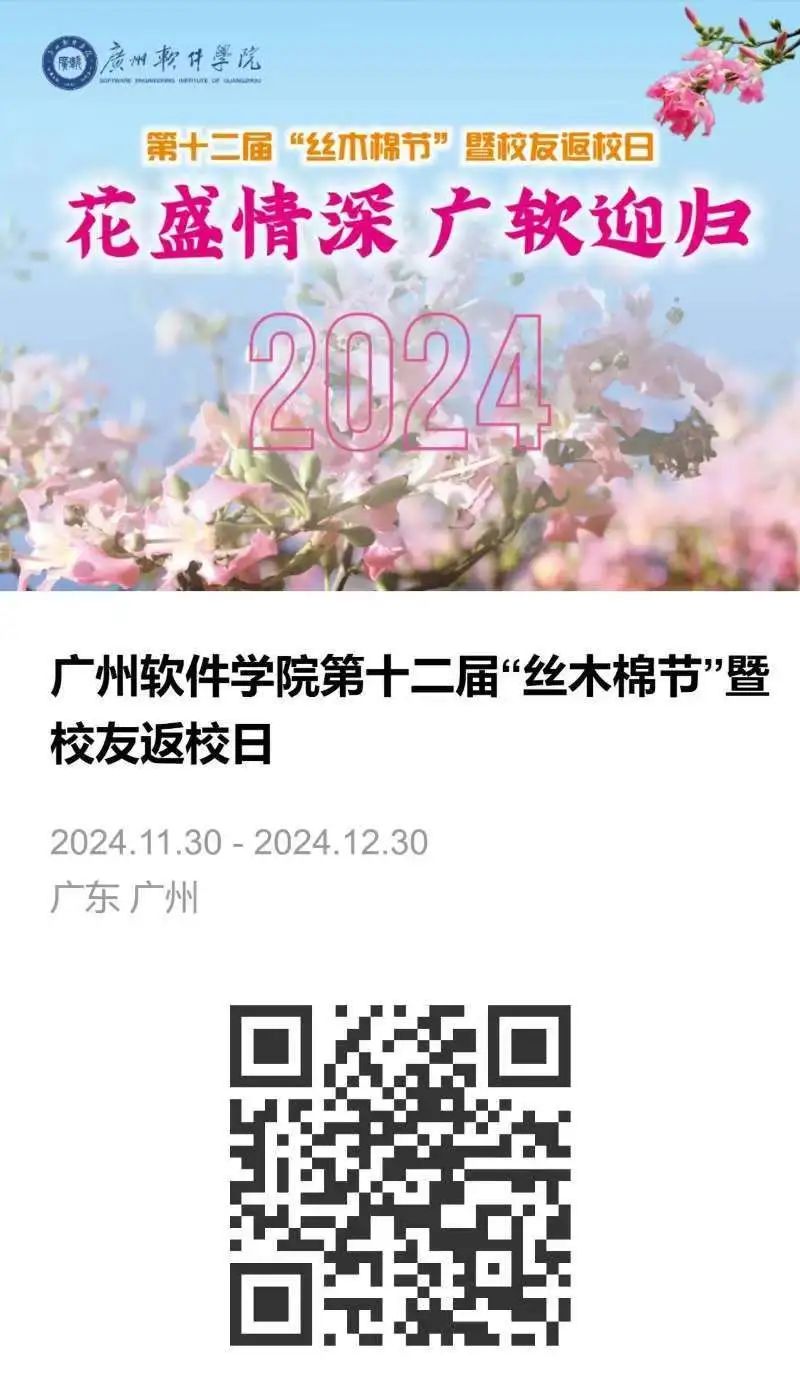“丝木棉节”暨校友返校日活动是学校的传统项目。于校友而言,是一次怀旧与情感联络的机会,他们能够故地重游、重温在校时的青春记忆,还能与三两好友重谈读书时的乐趣;于学校而言,有利于校园优秀文化的传承,也为学校建设提供宝贵建议,助力学校创新发展;于在读学生而言,校友分享的社会经验、人生感悟等可以帮助他们拓宽视野,让他们提前了解社会,助力个人发展。丝木棉绽放之时,亦是校友归家之日。于花海徜徉,赓续广软精神,共铸母校辉煌。