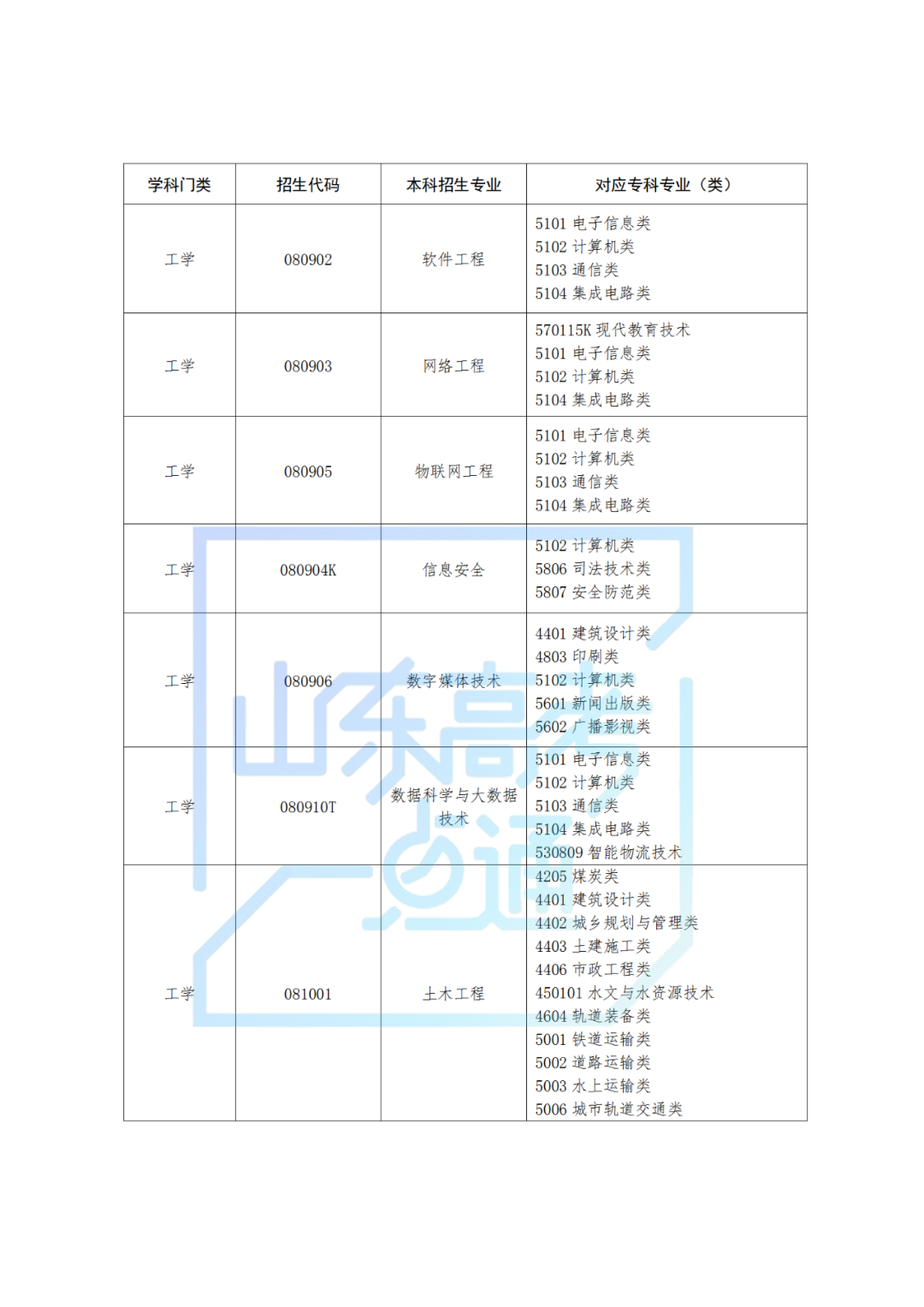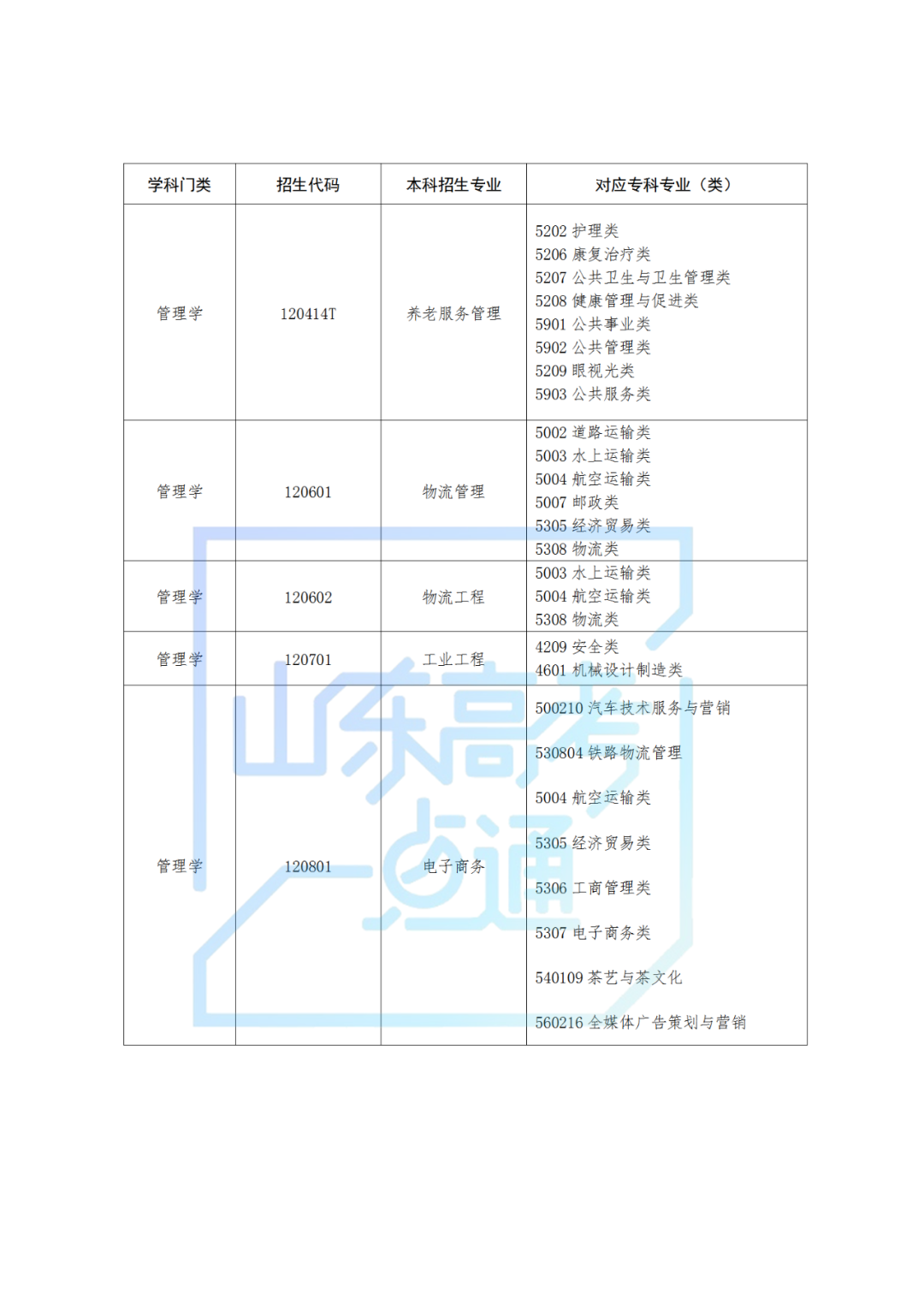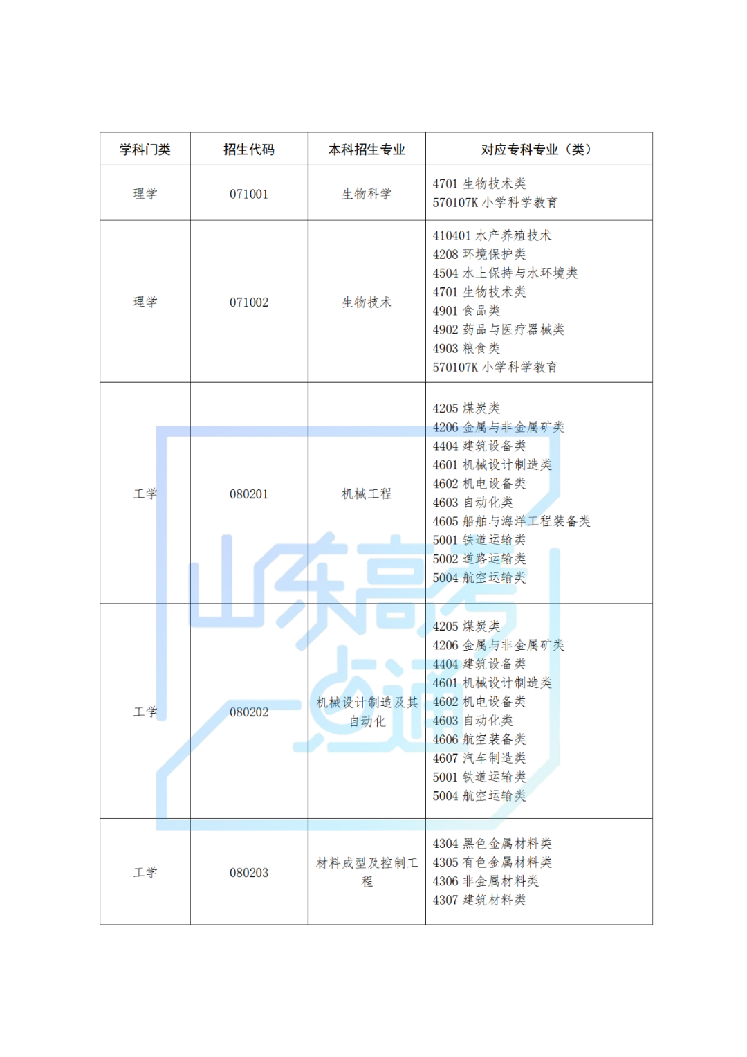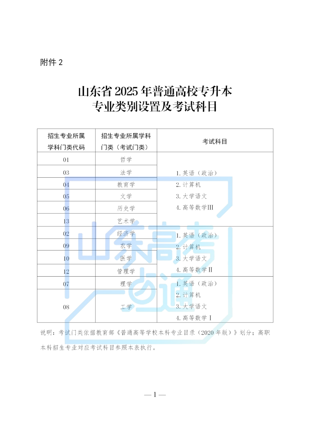 2.山东省2025年普通高校专升本专业类别设置及考试科目