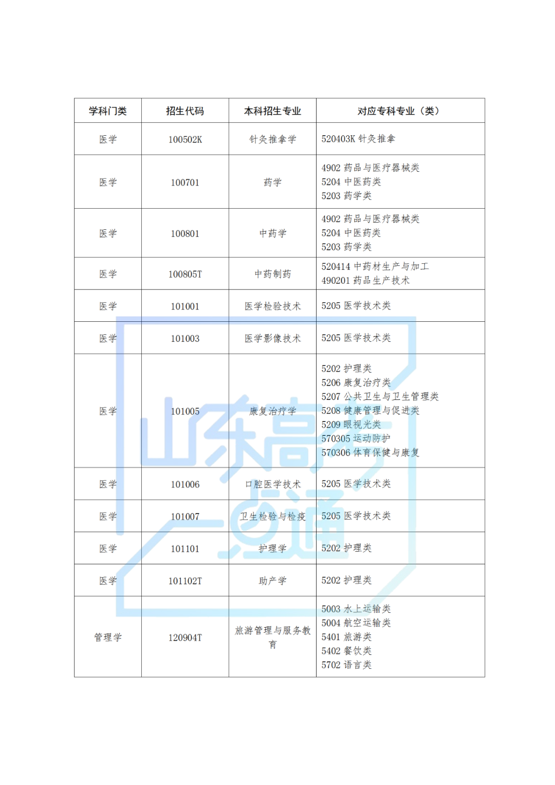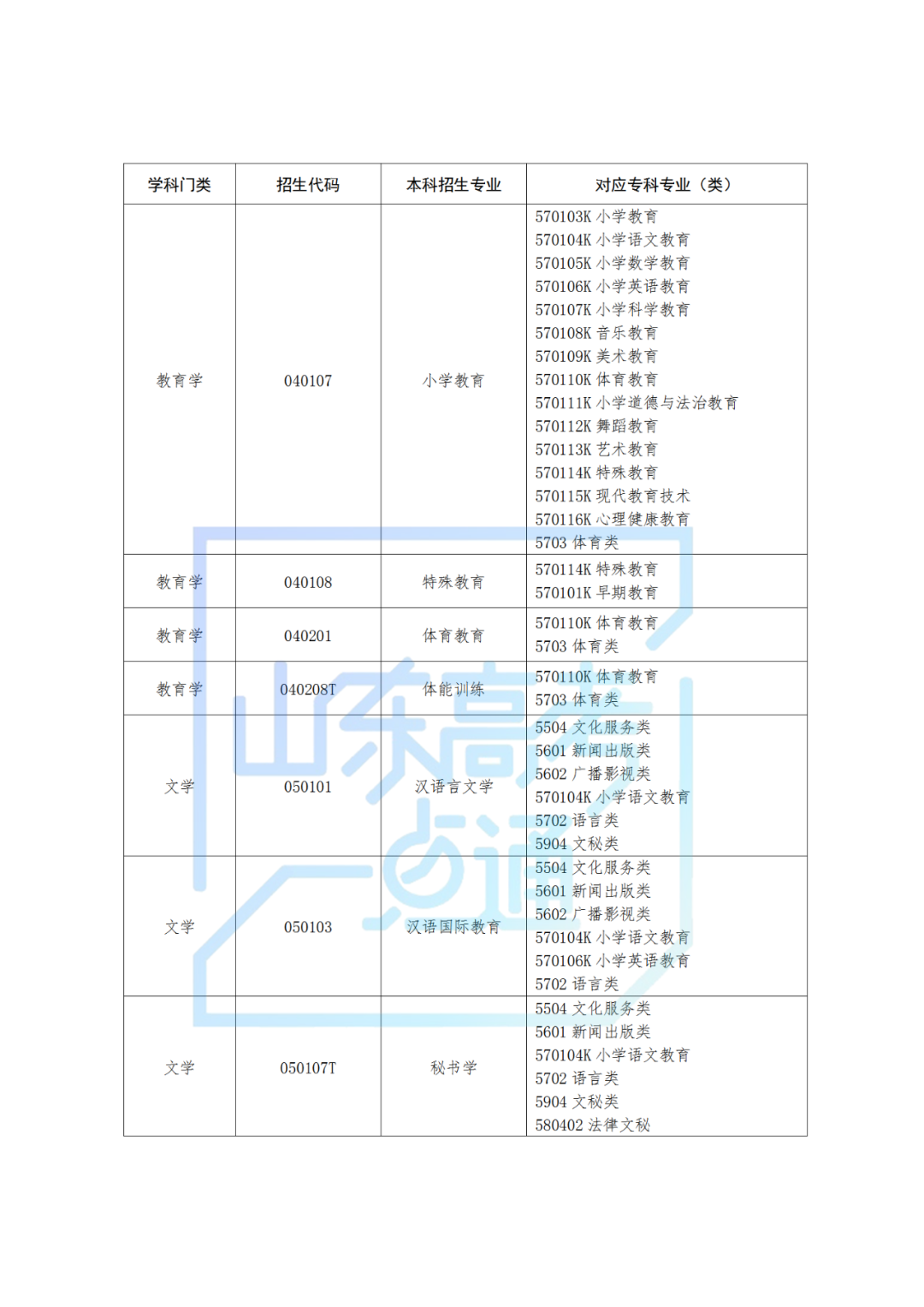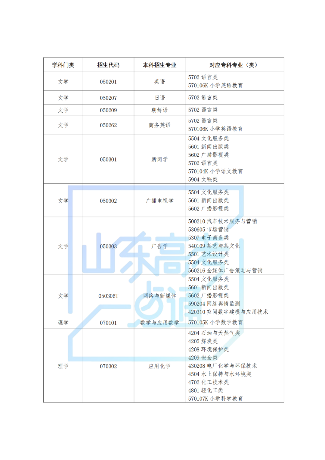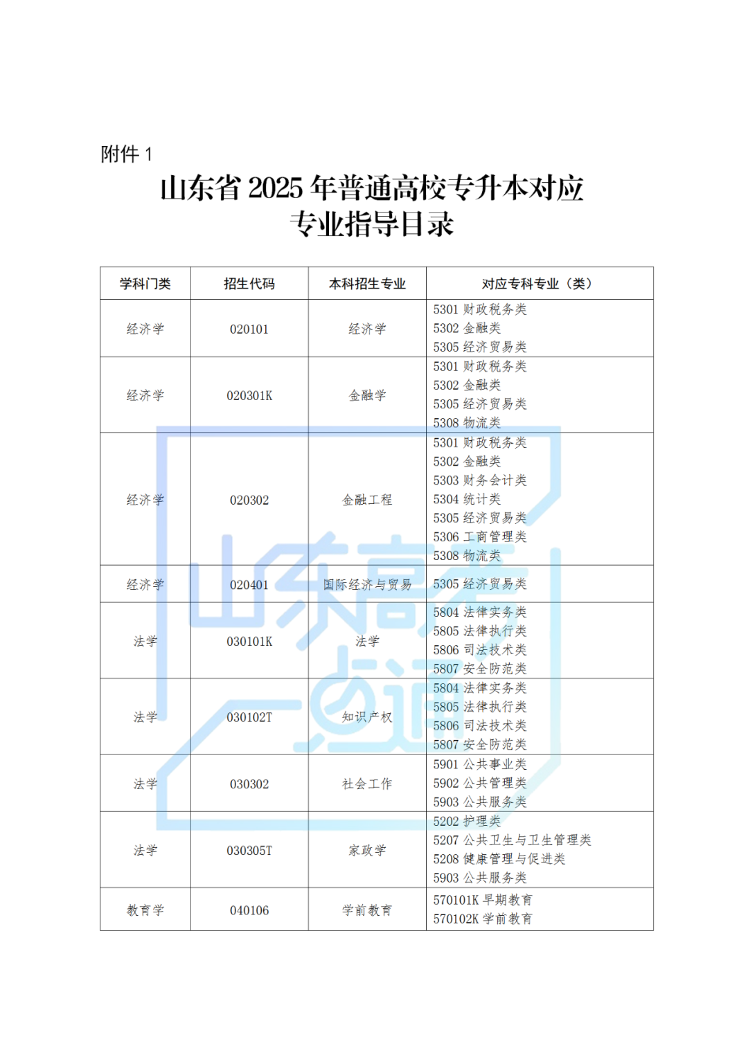 1.山东省2025年普通高校专升本对应专业指导目录