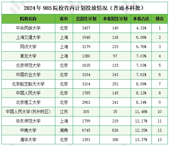 本省计划占比=本省院校在省内的招生计划/本省院校在全国的招生计划。