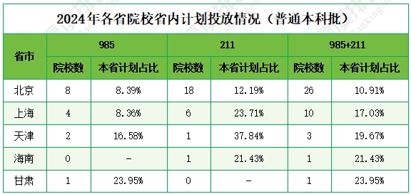 反直觉,北京最为慷慨,九成招生计划投放到市外