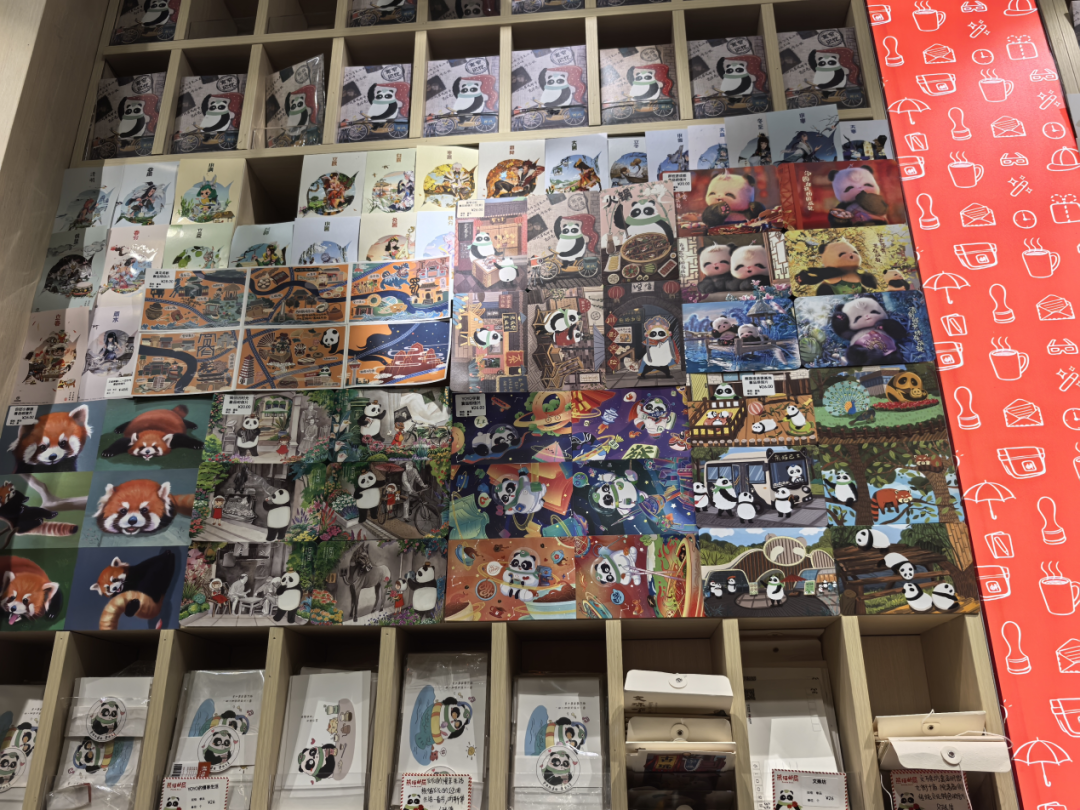 在邮局负责人唐晓老师的带领与讲解下,同学们参观了熊猫主题邮品展示区,欣赏了邮票、明信片、纪念品等一系列精美的熊猫主题