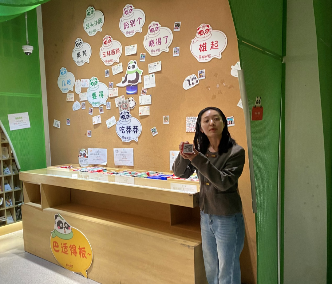 在文创空间,同学们通过邮局工作人员的讲解,了解到了设计师们在熊猫主题文创