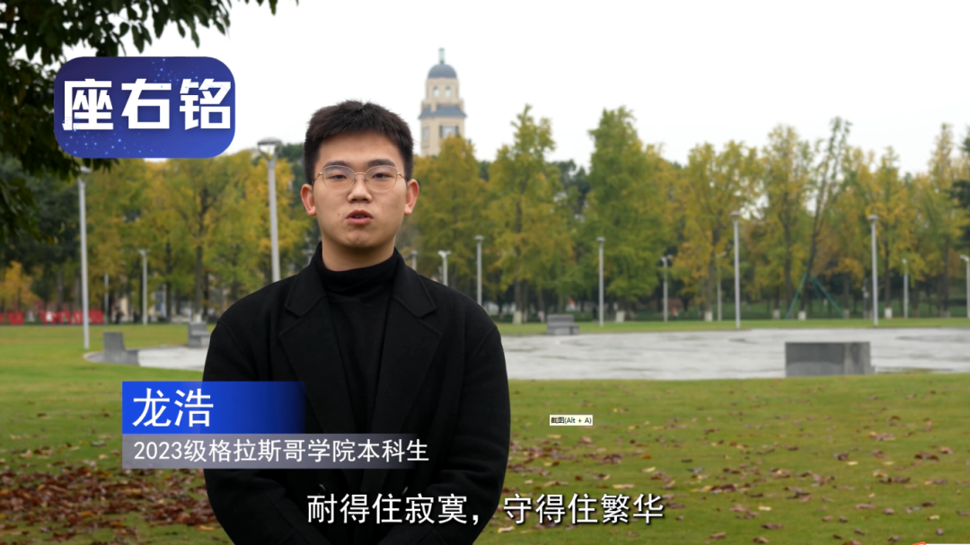 他当下的奋斗目标:努力适应大学相较于高中学习方式、学习内容的转变,并立下志向,在更加广阔的成电舞台,勇于实践,决心追求更加卓越的自己。