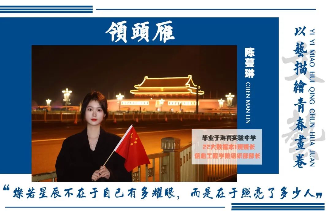 他积极参加校院集体活动来加深自己的集体荣誉感。“信工团学,不负遇见”他相信,团学的舞台对于每个人都是宝贵的成长契机,值得每一个人拥有。