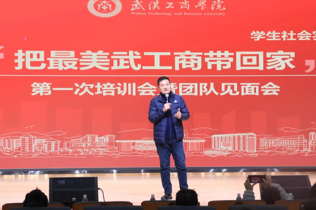 招生工作部朱宜部长以热情洋溢的致辞拉开活动序幕,他介绍了本次实践活动学生报名的基本情况,通报了报名人数、成团数量、回访高中数量均较上年大幅提升的喜人数据。并对各实践团队的活动开展提出了三点希望,一是希望各团队成员尽快在会后加快磨合,科学分工,开展合作;二是希望在实践活动中不同团队能互帮互助,共享共创;三是希望实践队员在宣传中能以自己的切身体会传达武工商的优势、魅力和与众不同,激发爱校共鸣,树立荣校担当。