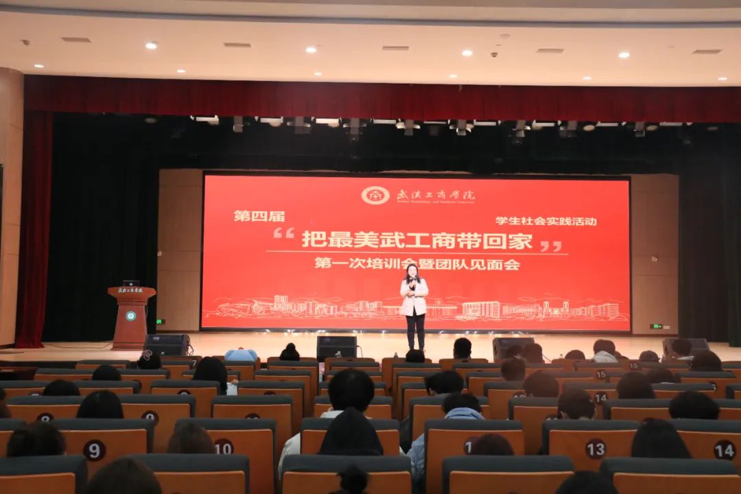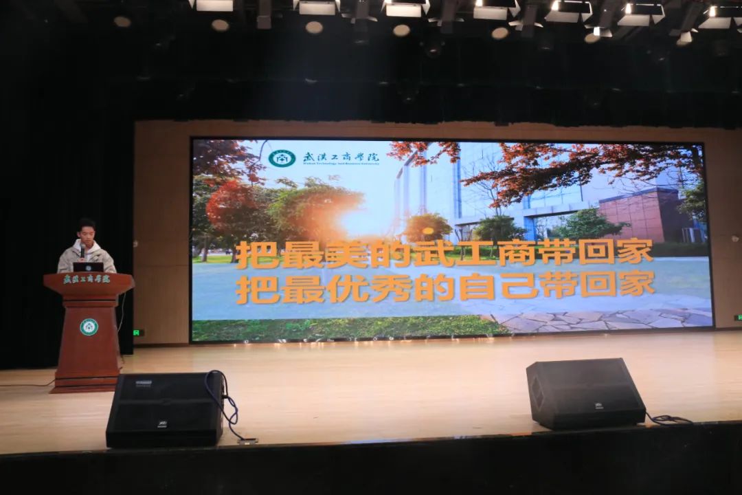 11月29日晚7点,武汉工商学院第四届“把最美武工商带回家”学生实践活动第一次培训会暨团队见面会在南大楼0501报告厅举行。第四届“把最美武工商带回家”全体学生、往届优秀学生代表、学校招生工作部全体老师共500余人参加了本次活动。会议由招生工作部招生科科长梅归归主持。