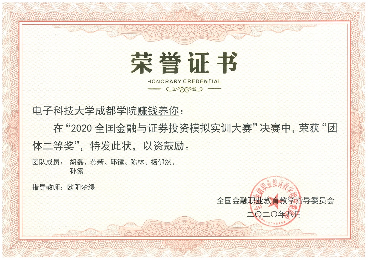 全国证券投资模拟实训大赛(原:全国金融与证券投资模拟实训大赛)系全国金融职业教育教学指导委员会主办,证券投资分析类唯一官方比赛。大赛是以证券业为背景,基于证券从业者所应具备的行业知识、基本业务技能及实操技能等设计的综合实训大赛。本专业目前已组织学生参与四届大赛,参与面覆盖全专业,并且取得了丰硕的竞赛成果。截止目前,我校金融类专业累计获奖人次达150人以上、6支队伍获全国二等奖、16支队伍获全国三等级及若干队伍获区域赛一二三等奖,该成果在四川省同类高校中名列前茅。