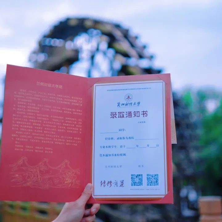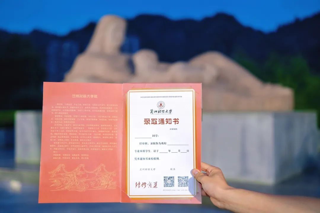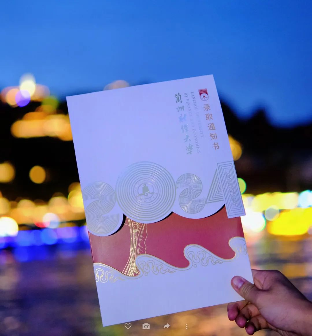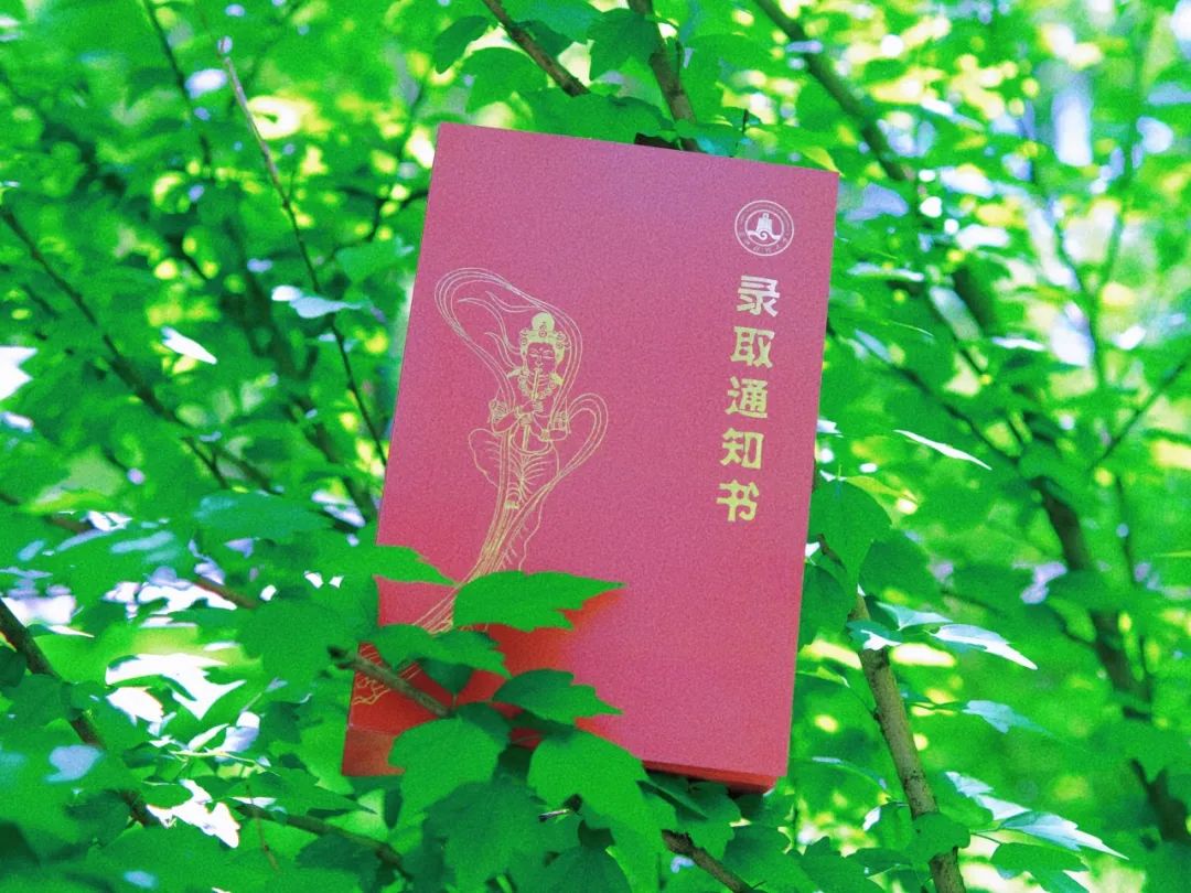 这份录取通知书不仅是进入大学门槛的钥匙,更是一件艺术品,一段历史的缩影,一份对未来的承诺。设计灵感源自敦煌壁画,用色彩斑斓的画面向每位新的兰财 er 们展示:在这里,你们将书写自己的传奇,开启智慧与美的探索之旅。这不仅是一份录取通知书,更是一份邀请函,让古老的敦煌艺术在当代绽放光芒,承载着学校对未来学者的期望,展现了中国高等教育对传统文化的尊重与传承。