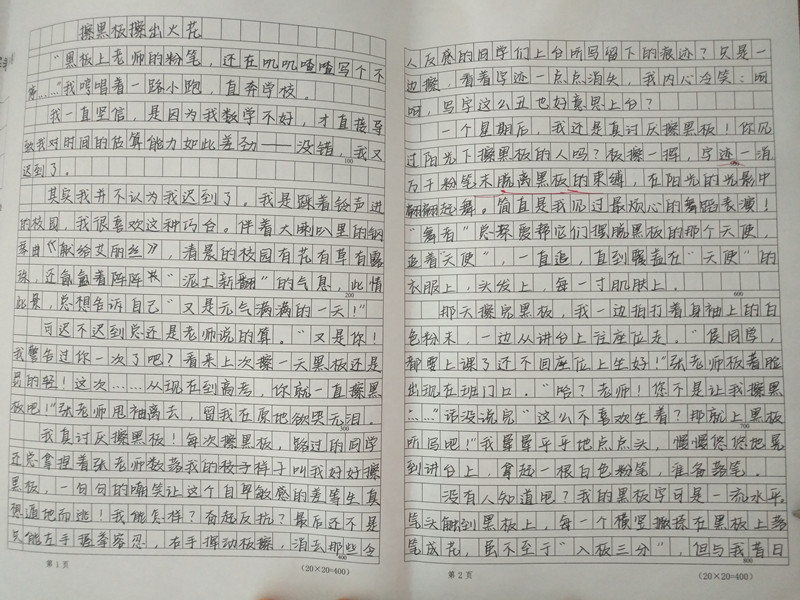 可怎么回事?慢慢的,我想念起擦黑板的生活。也许“无关风月,只是爱了”,但我细想,也许更多的是感激罢!擦黑板的我擦出了火花,火花引我向前,给我力量。
