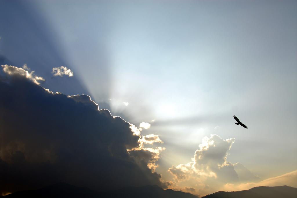 山鹰,一种伟岸的生灵,在昏暗模糊的黄昏里,在虚无广阔的沙漠中,它大张双翼,以挺拔的姿态和锐利的目光守护着清冷的山巅。而在那花红柳绿的山脚屋檐下,是叽叽喳喳的百鸟,它们因为无法飞到雄鹰所在的高度,而在山下唱着媚俗的小调,妄图将高高在上的雄鹰拉到这残瓦之下。然而没有一只山鹰会遂了它们的心愿。