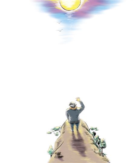 转身往回走,我脑海里回想着父亲招手作别的神情,却听到了乌鸦的叫声。抬起头,成片的乌鸦朝着老人树的方向飞,遮天蔽日。