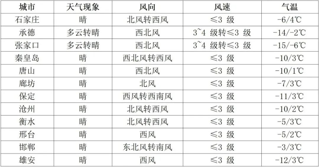 二、未来三天全省主要城市气象要素预报(河北省气象台)