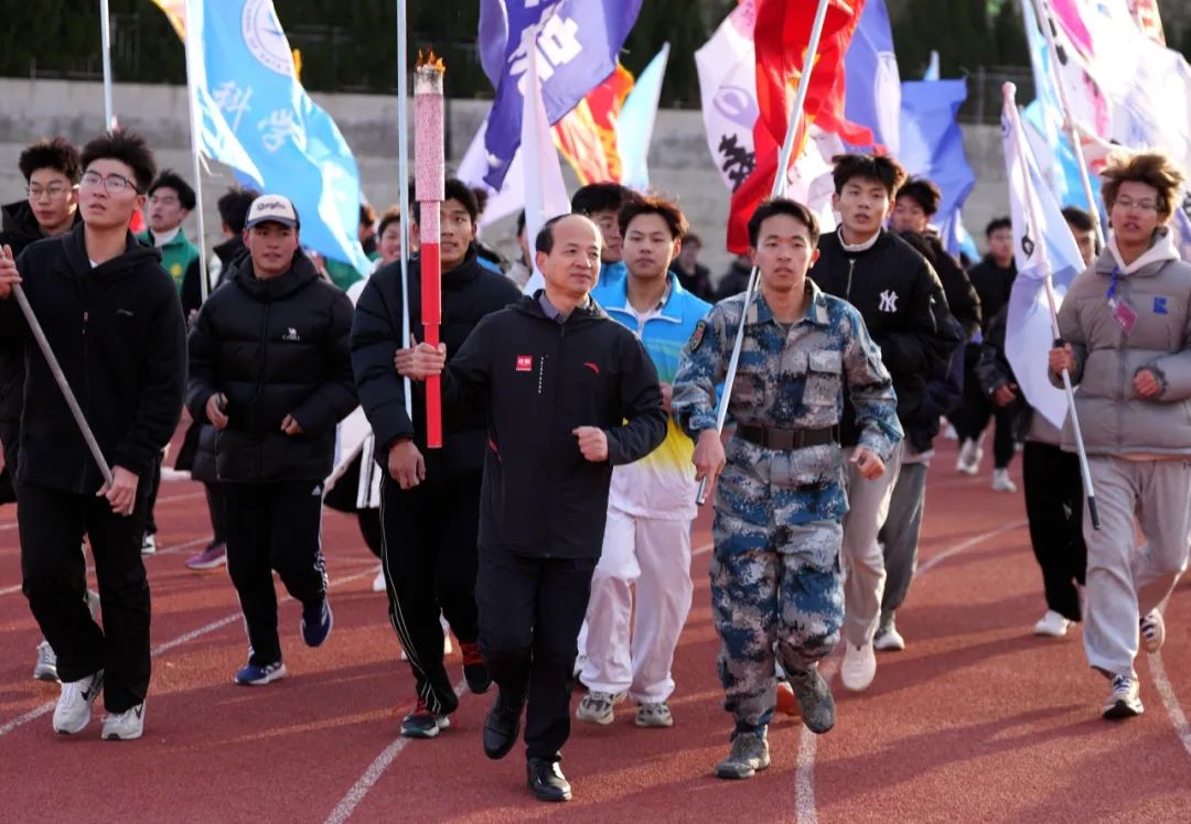 岁序交替,初冬之际,由学生工作处(部)、团委主办,文化传媒学院承办的烟台科技学院第四届体育文化节于12月11日下午盛大开幕。校党委书记王少鹏,校长马红坤,副校长郭迎昌、王凤丽、苏东平以及各二级学院师生代表共计1500余人参加开幕式及火炬接力活动。