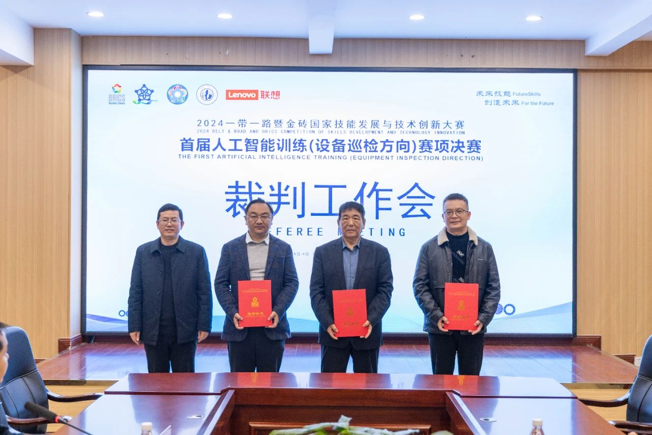 12月5日上午,2024一带一路暨金砖国家技能发展与技术创新大赛首届人工智能训练(设备巡检方向)决赛裁判工作会在行政楼101会议室召开。重庆轻工职业学院教务处副处长谭治云主持会议。15名赛项裁判参加会议。