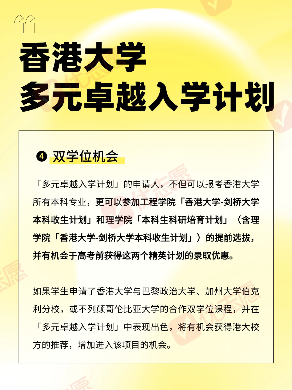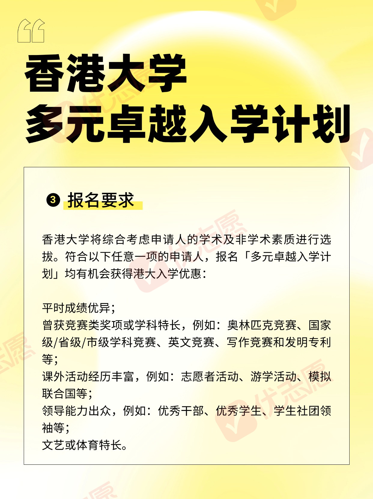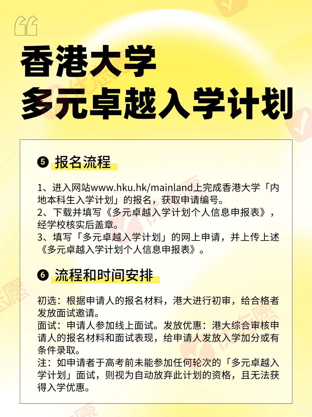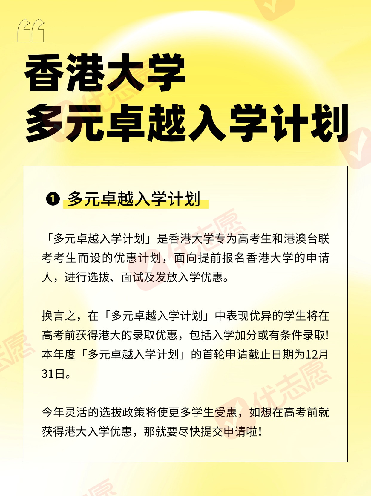 香港大学2025年度「多元卓越入学计划」申请正在进行中,参与计划的高考生将有机会获得港大入学加分和有条件录取,想参与的同学抓紧报名啦,2024年12月31日首轮申请截止!