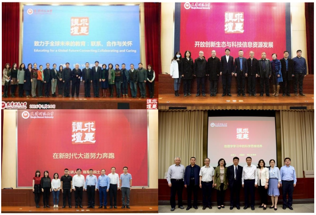 求是讲坛的每一场讲座都为在场的师生提供了丰富的学术滋养和思维碰撞,也提升了求是讲坛在学术界的影响力和认可度。2015年10月20日,天津师范大学求是讲坛迎来首位院士陆大道。他带来的《“一带一路”战略及全球地缘政治分析》讲座,使同学们深入了解了天津在国家实施“一带一路”战略中的优势、机会和面临的挑战。陆大道院士虽年事已高,身体不便仍坐着轮椅授课,激励师生学习研究,坚定其为中国梦奉献的信心、决心。这场讲座意义重大,为讲坛增添了浓墨重彩的一笔。