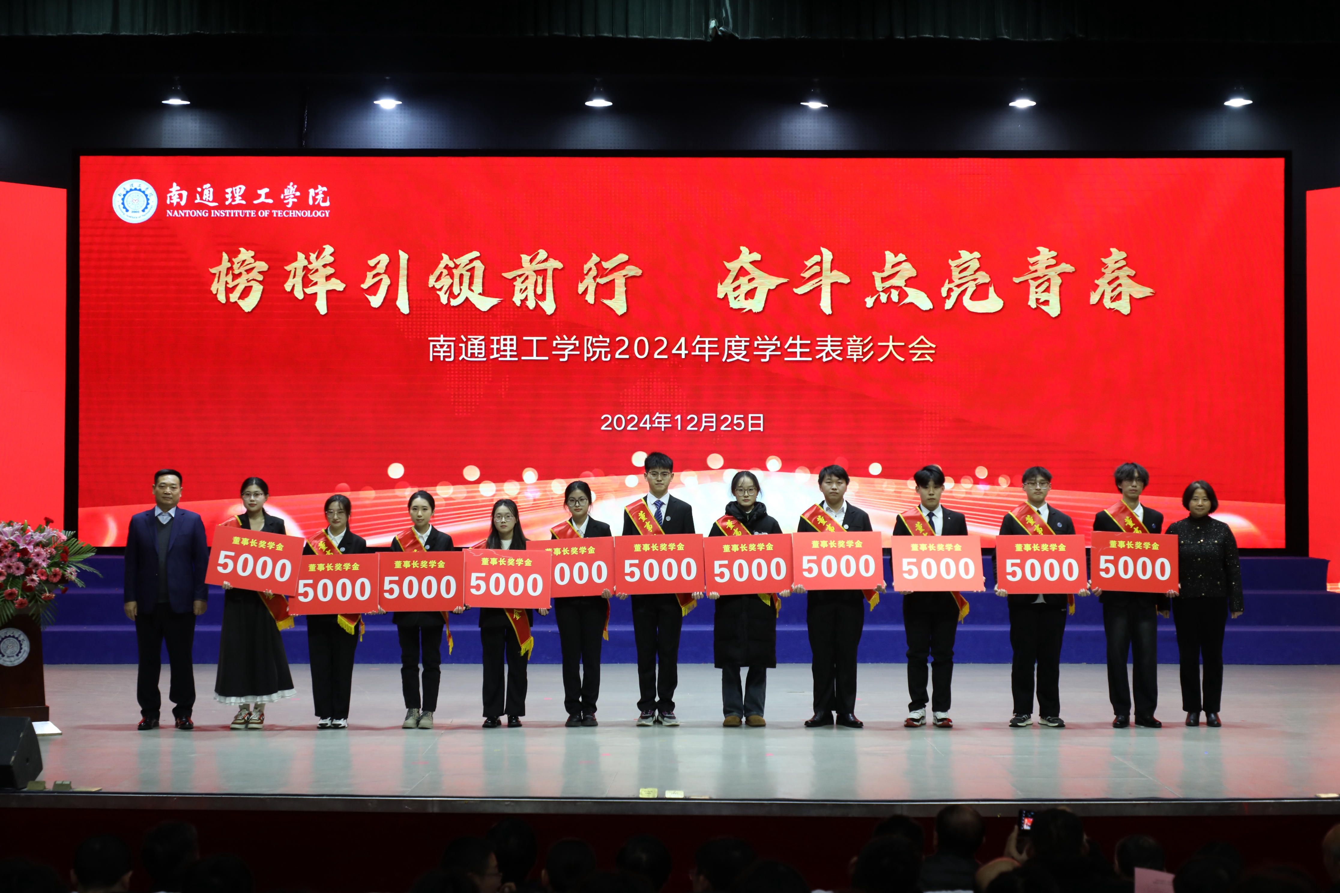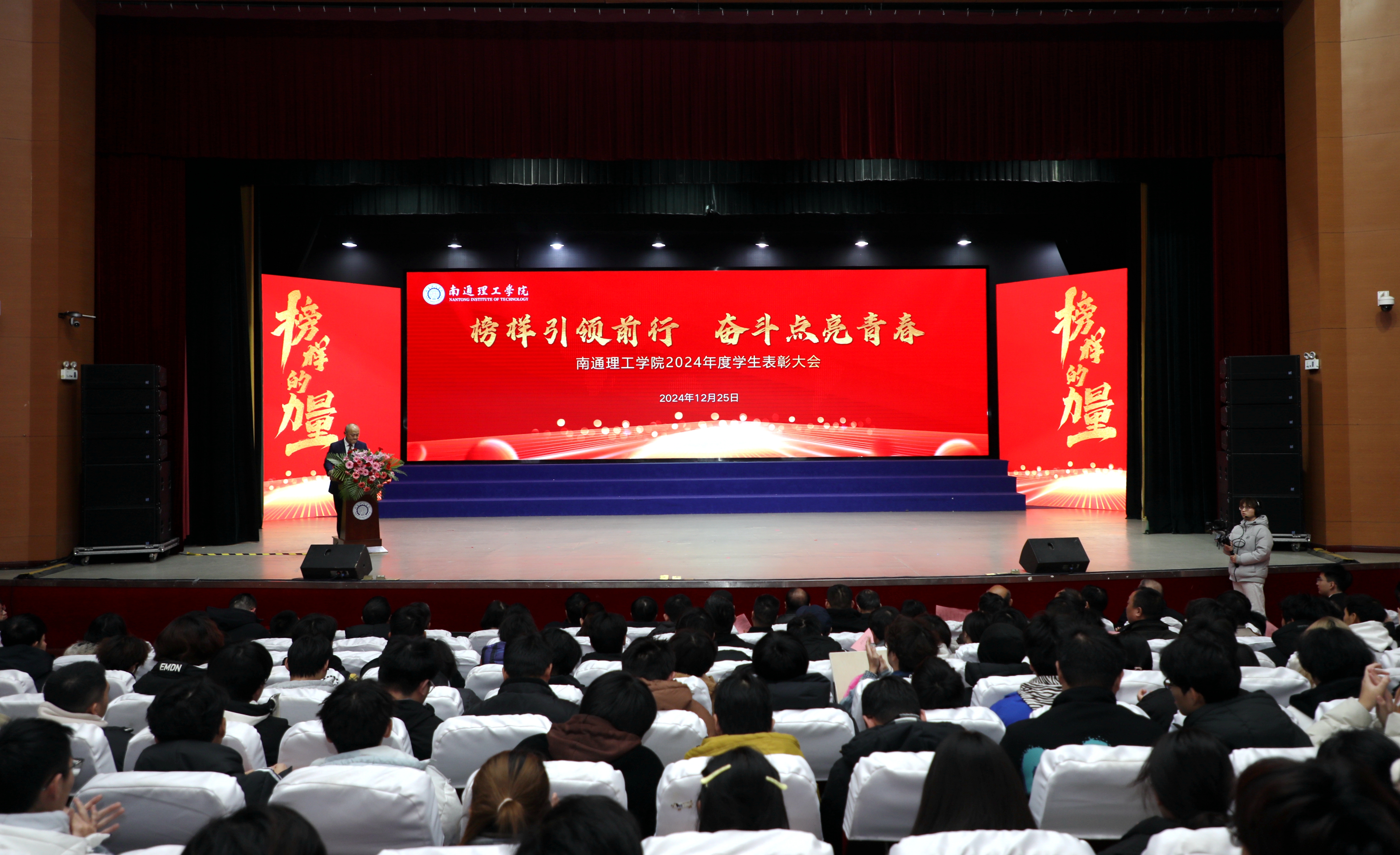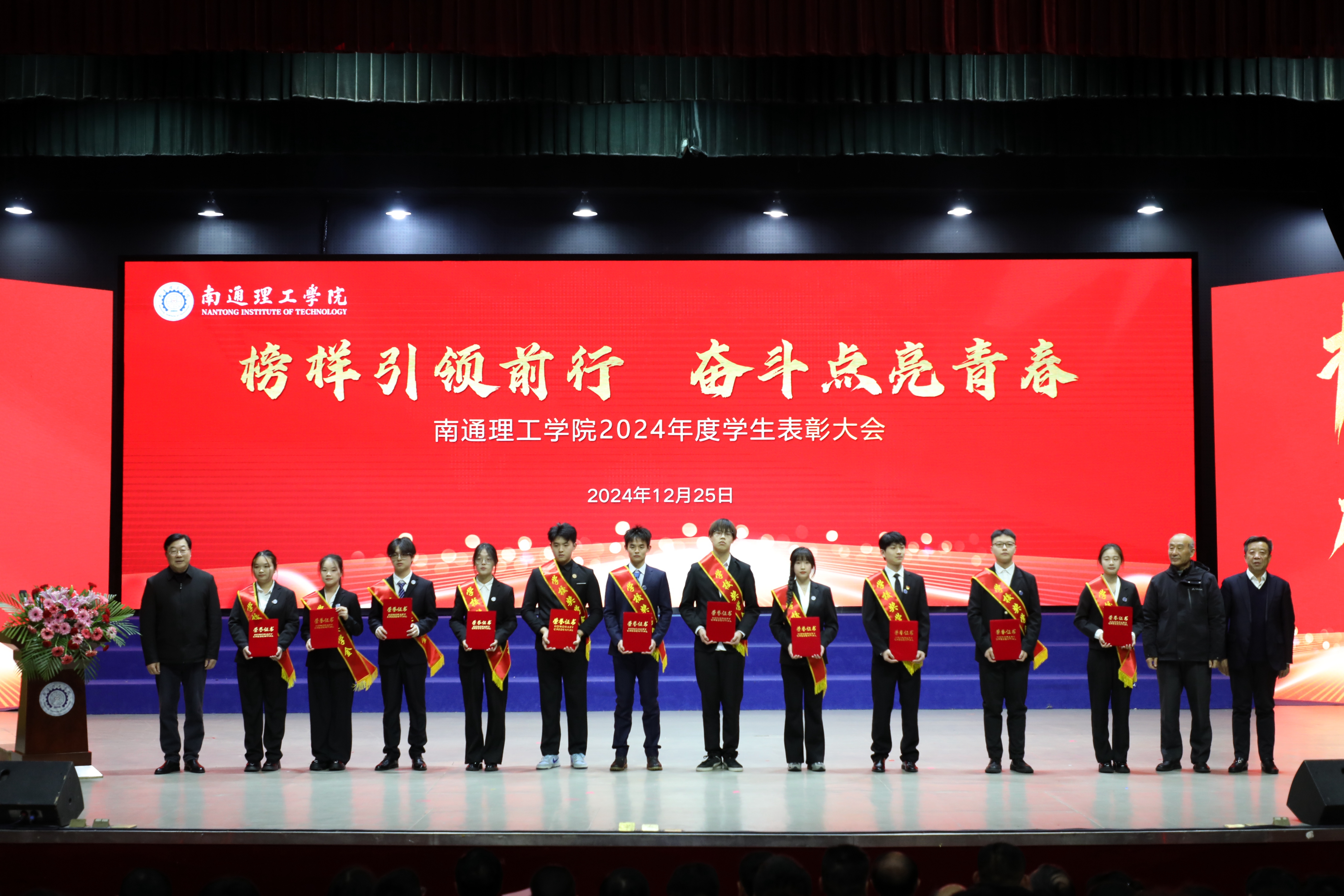 12月25日下午,我校在大礼堂召开2024年度学生表彰大会。董事长陈明宇、校长程纯、党委书记江应中等全体校领导出席大会。大会由副校长赵怀斋主持。海安校区设分会场,线上同步直播。