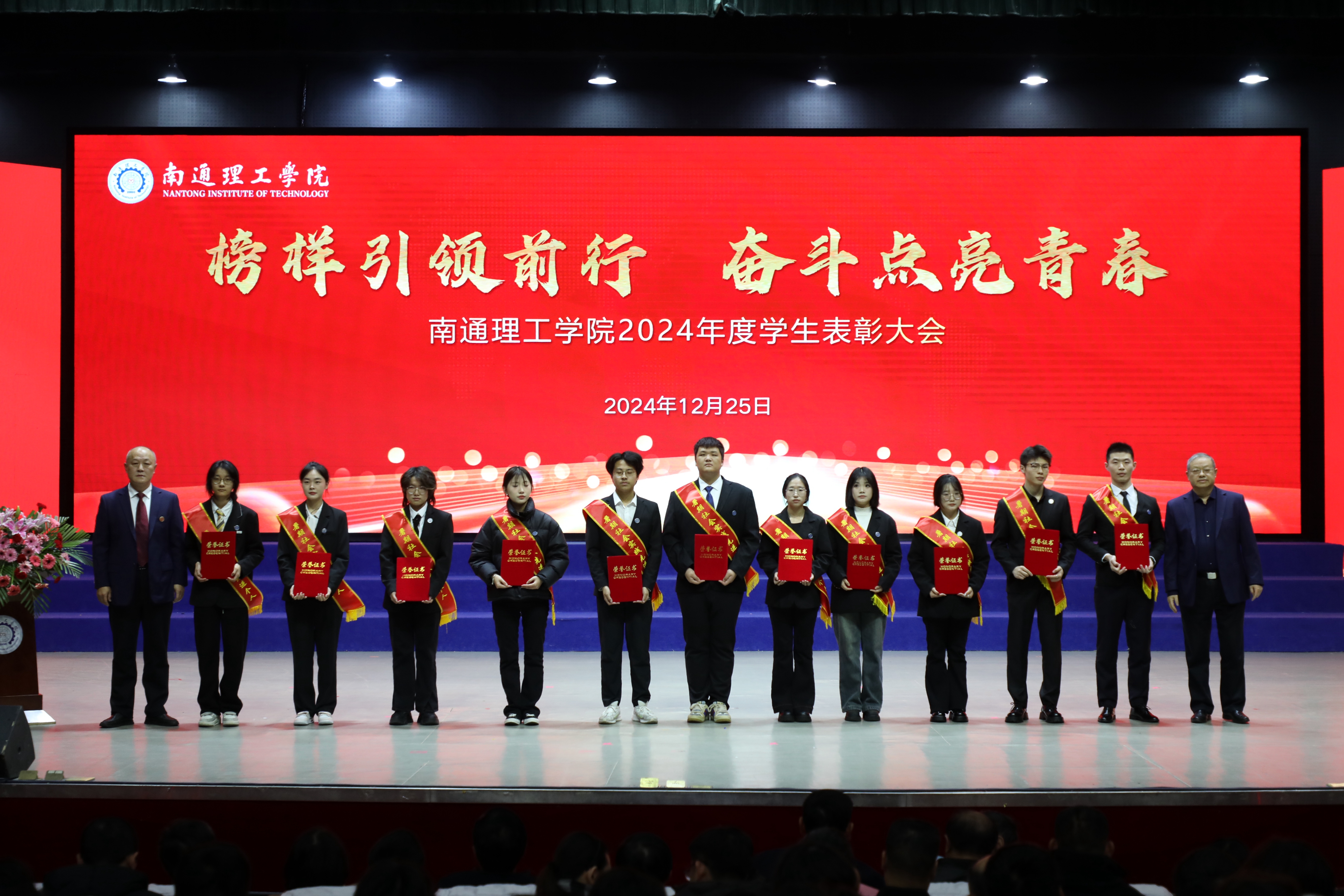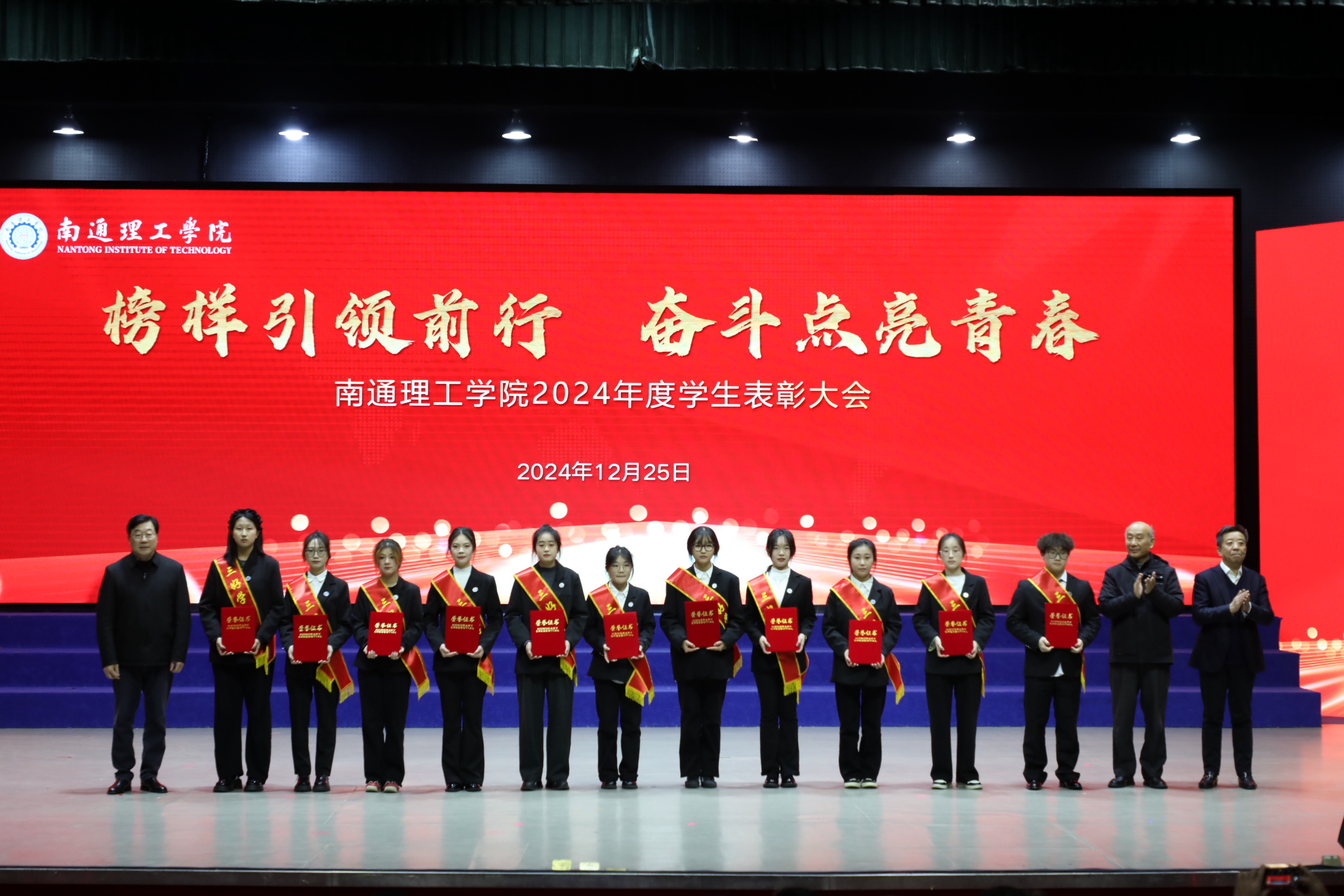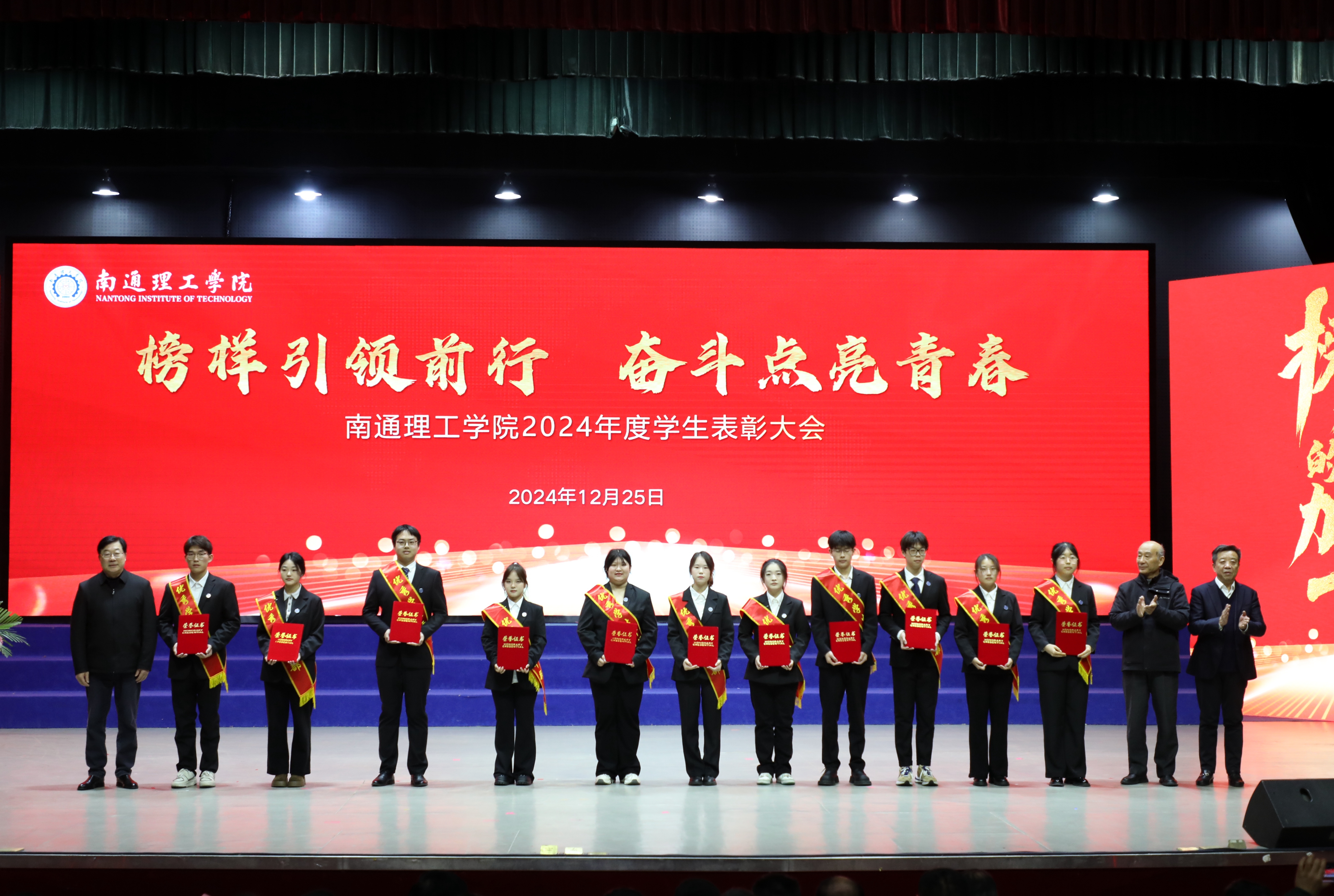 12月25日下午,我校在大礼堂召开2024年度学生表彰大会。董事长陈明宇、校长程纯、党委书记江应中等全体校领导出席大会。大会由副校长赵怀斋主持。海安校区设分会场,线上同步直播。
