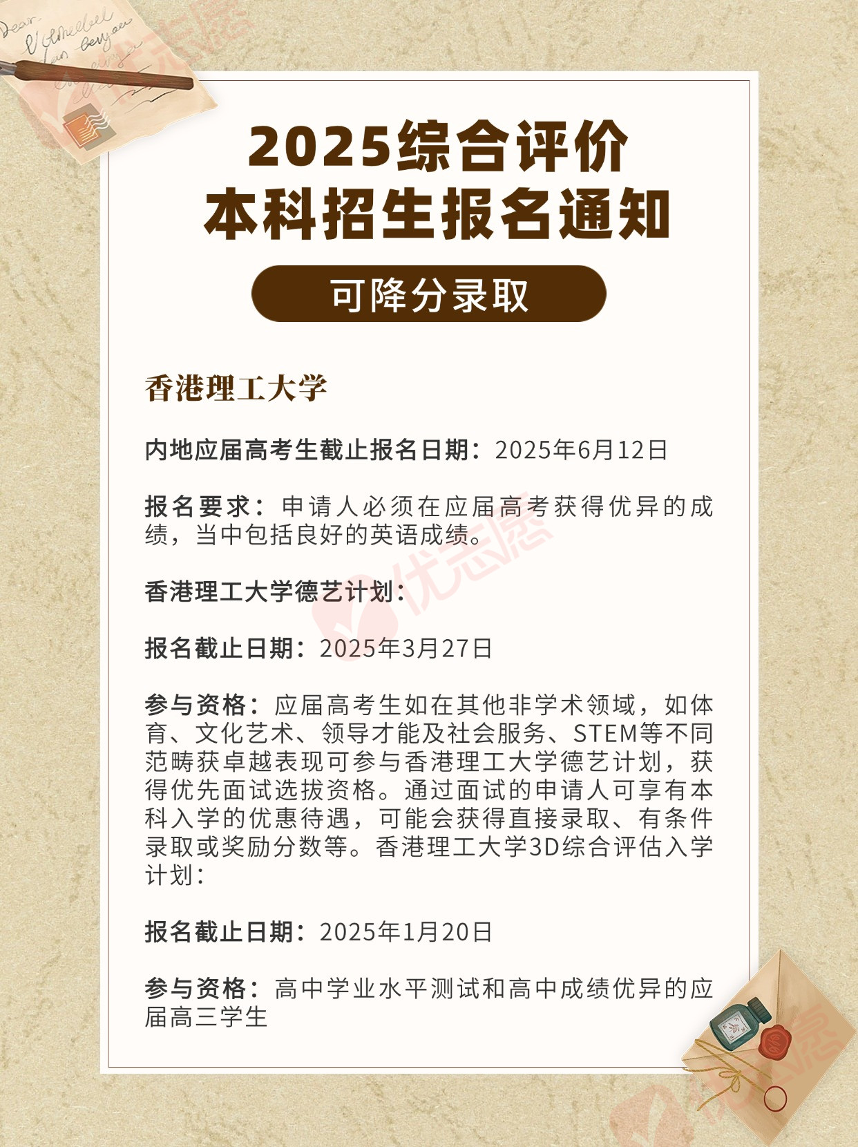 近日,已有近10所高校发布2025综合评价本科招生报名通知,针对这一除高考外的另一升学途径,小优也特意整理了相关要点,为有需要的考生家长提供帮助,一起了解!