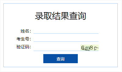 步骤二:在在查询页面输入姓名、考生号(10位)、验证码,点击查询按钮即可查询录取结果