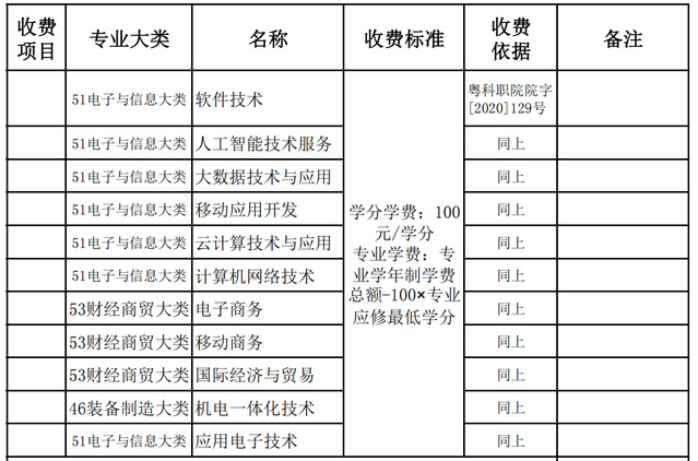 61电子信息大类 | 软件技术 | 学分学费:100元/学分专业学费:专业学年制学费总额-100×专业应修最低学分 | 粤教高[2014]5号 | ||