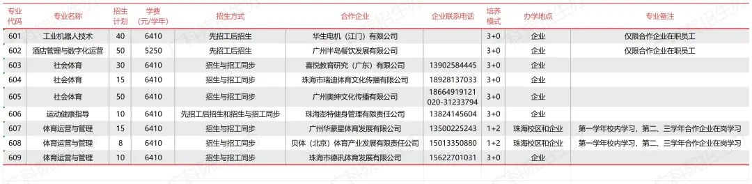 学校与珠海市瑞迪体育文化传播有限公司合作,招生与招工同步,联合培养一体化育人。双方共同确定招生方案,招生考试方式,择优录取学生为现代学徒制班的学生。珠海市瑞迪体育文化传播有限公司学徒制试点培养模式为校企协同在岗培养(简称“3+0”,即三年在企业),学生在企业通过“师傅带徒弟”的方式学习和工作。