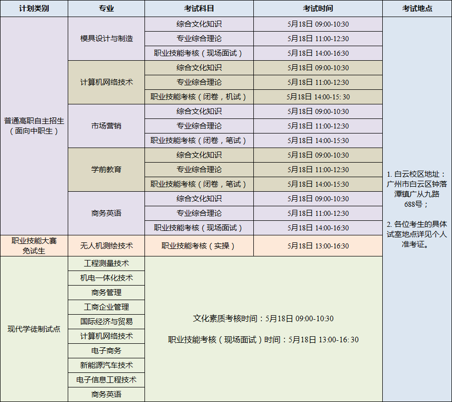 8.各专业职业技能考核(实操、面试)时间与地点特别说明: