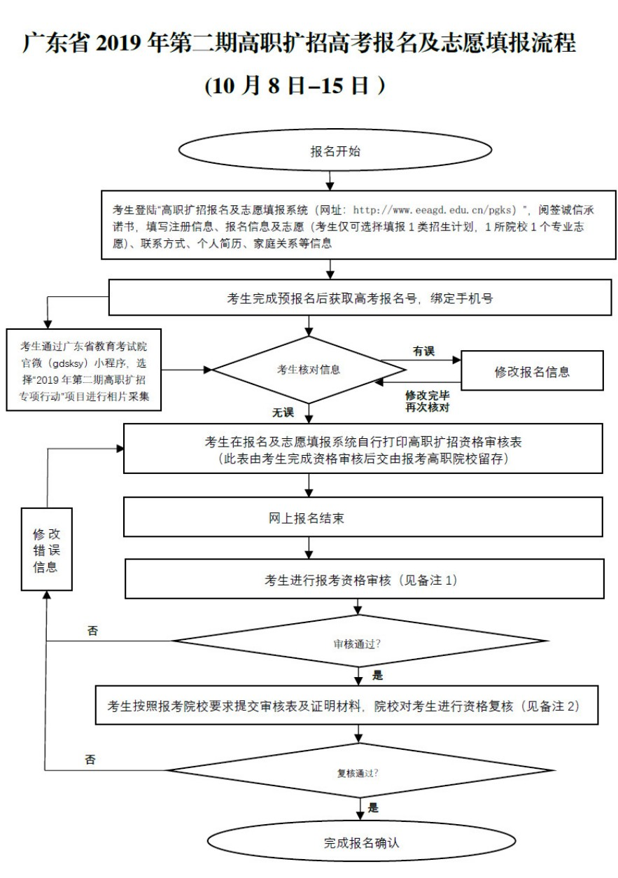 (二)考生完成预报名后核对信息,并通过广东省教育考试院官微(gdsksy)小程序,选择“2019年第二期高职扩招专项行动”项目进行相片采集。
