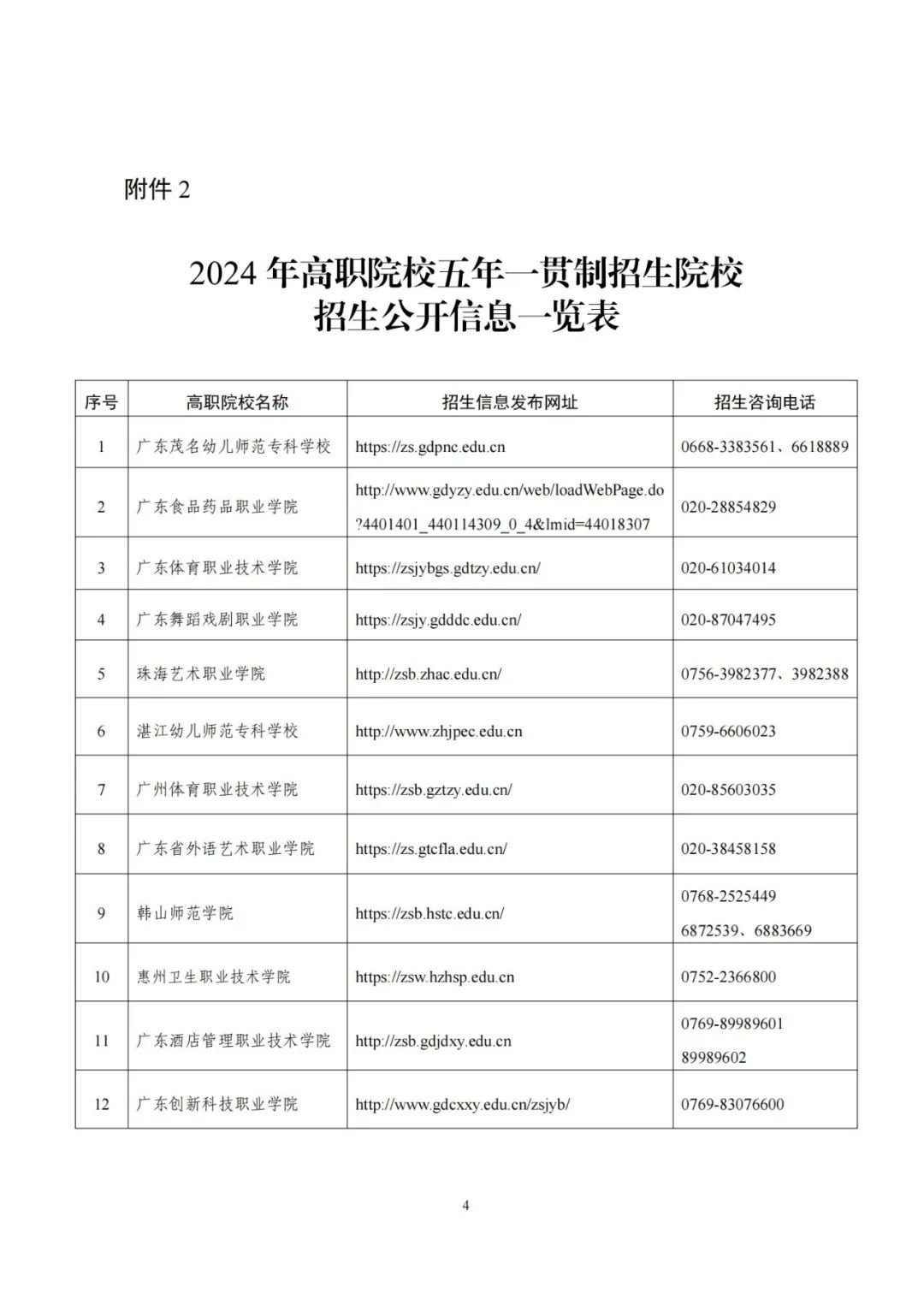 2.2024年高职院校五年一贯制招生院校招生公开信息一览表