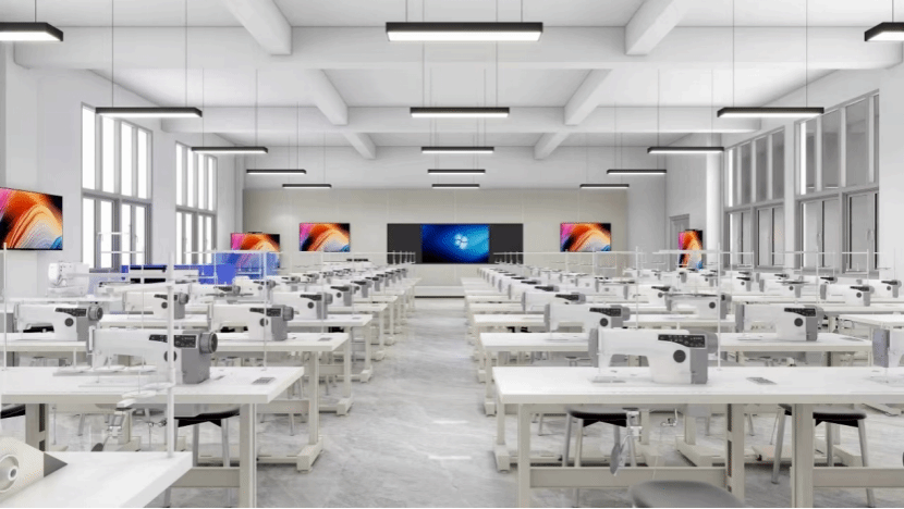 基地占地面积700平方米,拥有先进的设备和完善的教学设施,可满足180人同时培训,确保学员在学习过程中能够获得良好的学习环境和学习体验。基地由服装设计与制作实训室、服装CAD实训室和服装立体裁剪实训室组成,配备了双屏互动智慧教学平台以及各种先进的专业服装设备,如电脑平缝机、电脑包缝机、方头缝绷机、服装一体化熨烫台、高速电子钉扣缝纫机、高速电子平头锁眼机、自动粘合机、绣花机、服装CAD工作运行系统、绘图仪、立体裁剪人台等,可开设服装设计、制版、排料、工艺、立体裁剪等服装培训课程,可为清远市服装制造企业人员开展一针一线缝纫工技能培训、服装制版师和服装立裁师技能培训和考证。