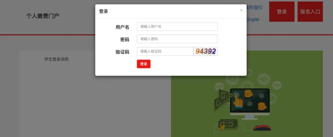 点击“收费平台”,弹出个人缴费门户,点击“登录”。