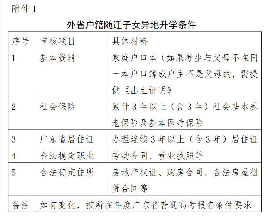 附件1:外省户籍随迁子女异地升学条件