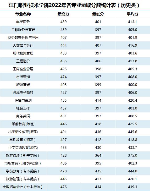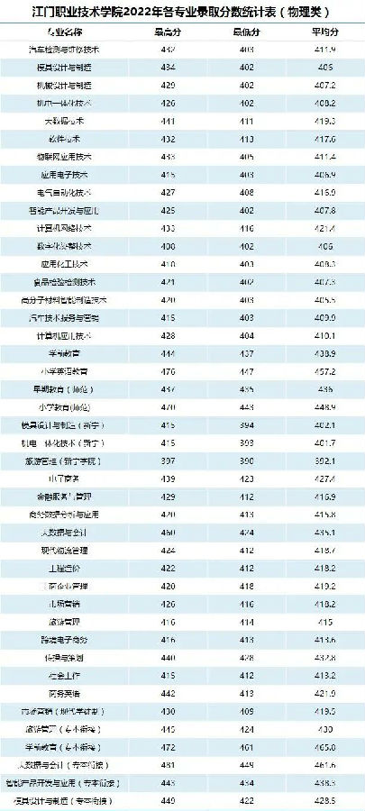 江门职业技术学院2021年夏季高考省内各专业录取分数