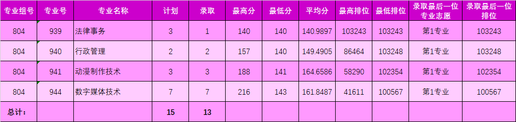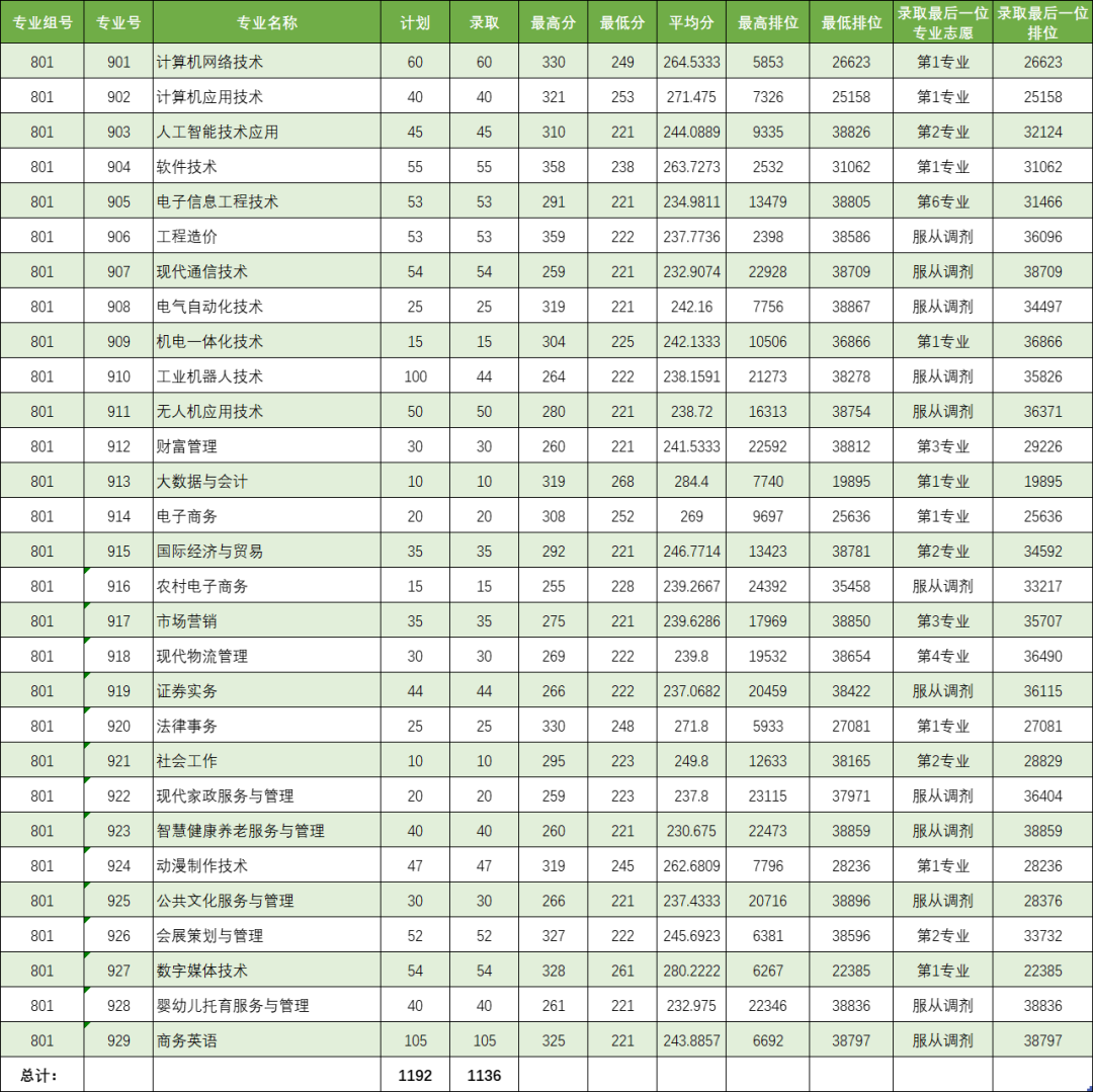 录取最后一位:专业录取根据专业志愿优先原则,按招生计划完成该专业录取的最后一个考生的专业志愿、分数和排位