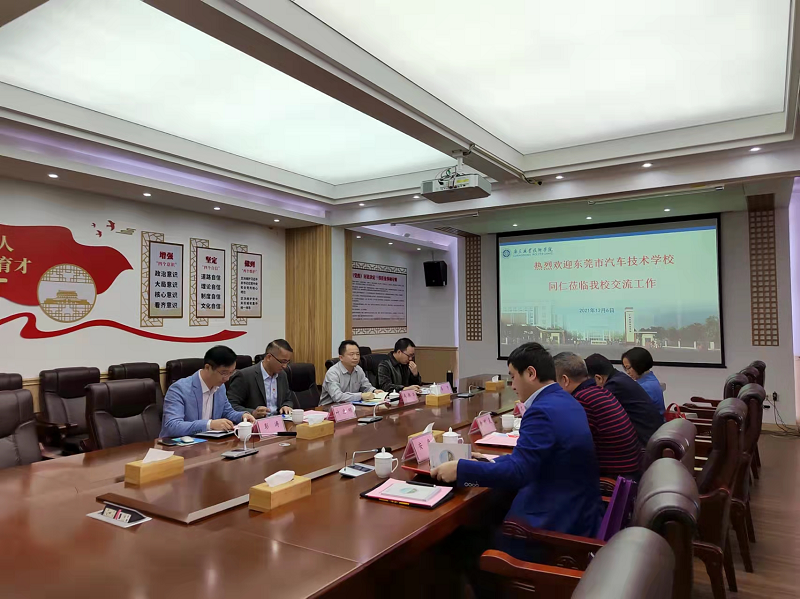 12月6日,东莞市汽车技术学校校长余刚灵带领招生办主任沈振国,教务处副主任安康,汽车维修专业部部长徐凤英来我校交流。学校党委副书记叶忠明、教务部副部长姜宇、招生与就业指导中心副主任彭涛、汽车与交通学院副院长成伟华出席交流会。会议由招生与就业指导中心副主任彭涛主持。 会上,叶忠明对余刚灵校长一行的来访表示热烈欢迎,并介绍了学校近年来的发展情况;成伟华介绍了我校汽车与交通学院专业建设情况;余刚灵介绍了东莞市汽车技术学校的办学情况及发展现状。双方在汽车相关专业建设方面进行了深入的交流和探讨,并就两校在汽车相关专业开展中高职贯通三二分段培养试点合作达成初步意向。(图、文/王志鹏)