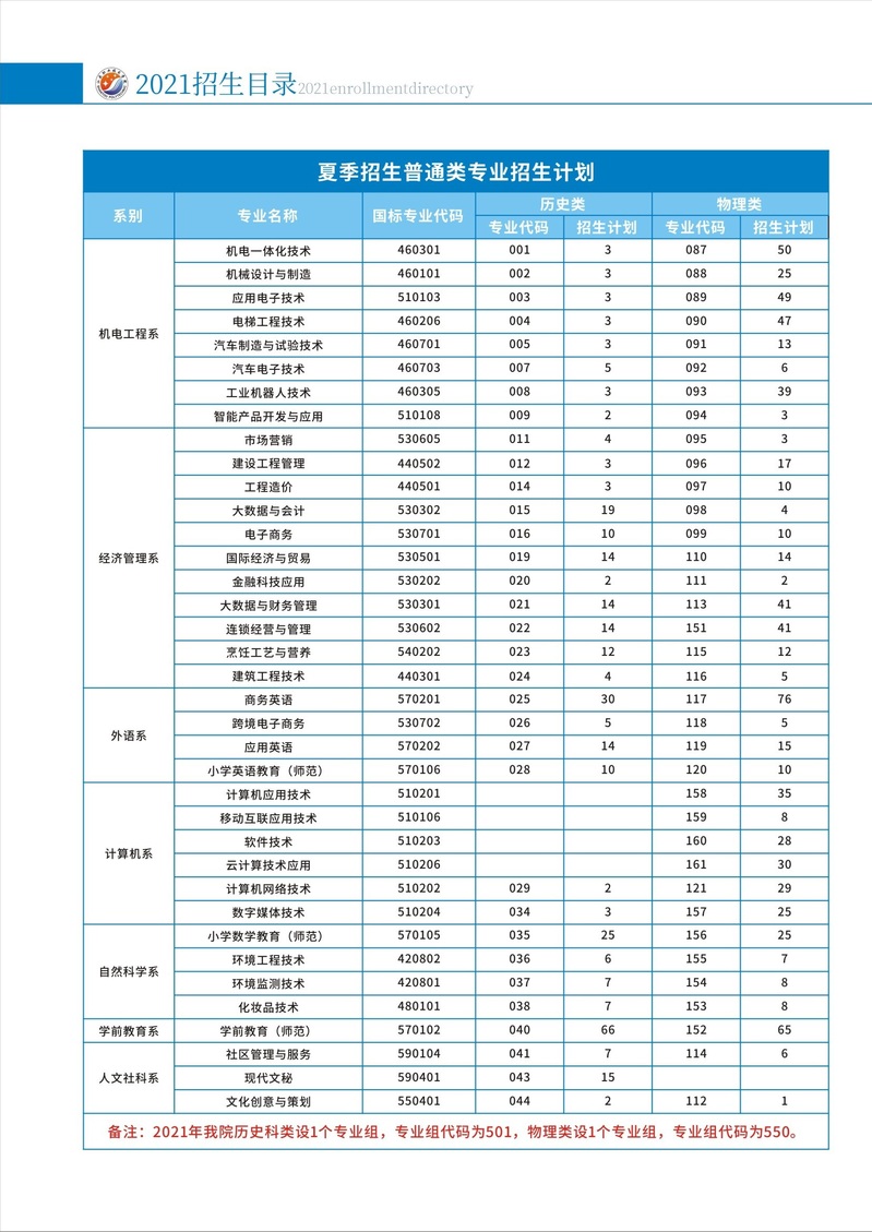 汕头职业技术学院2021年夏季招生计划