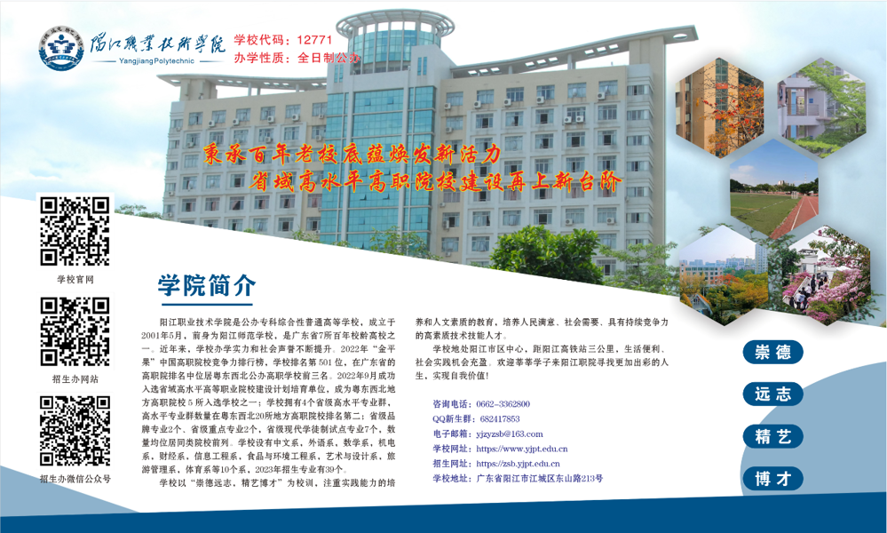 学校地址:广东省阳江市江城区东山路213号(阳江职业技术学院)