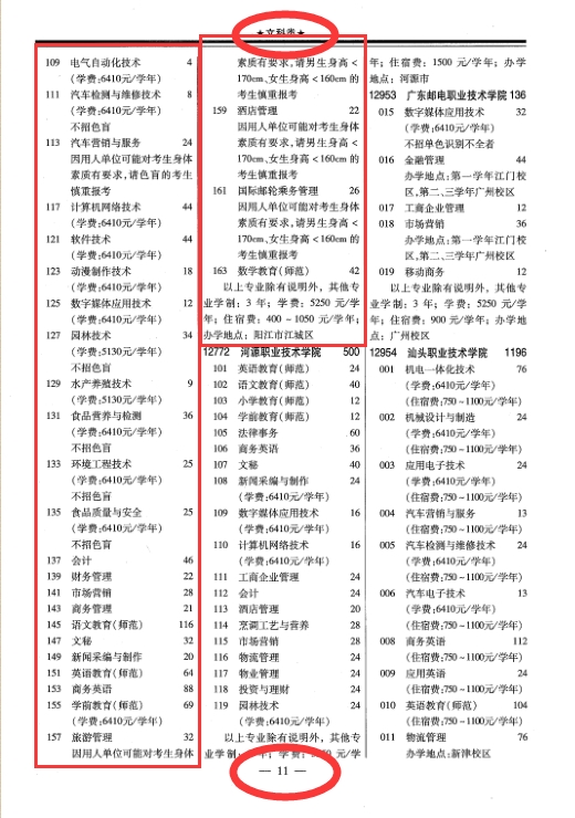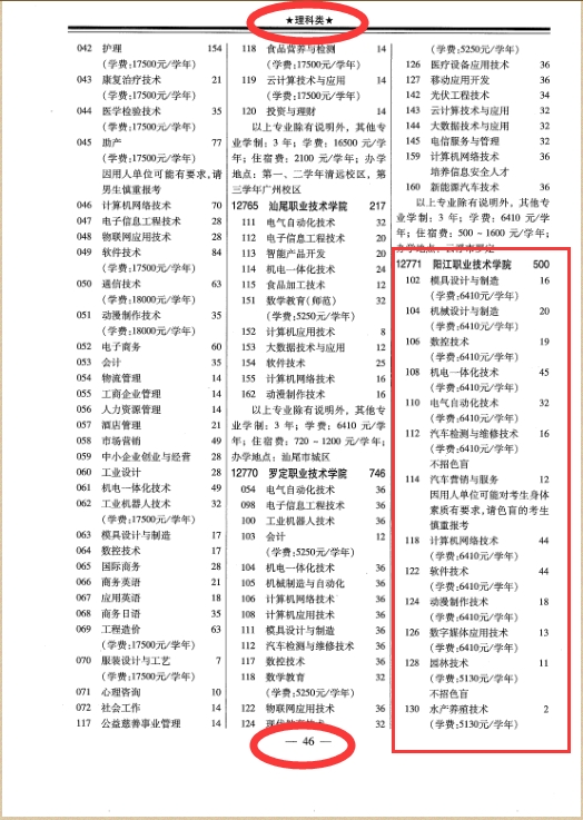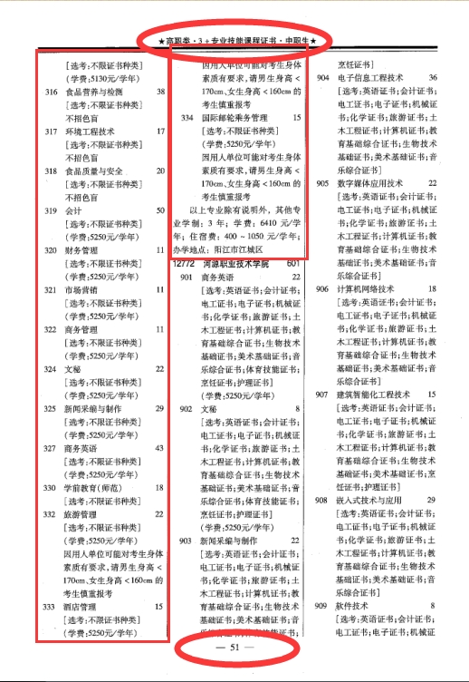 2020年春季高考统一招生专业目录
