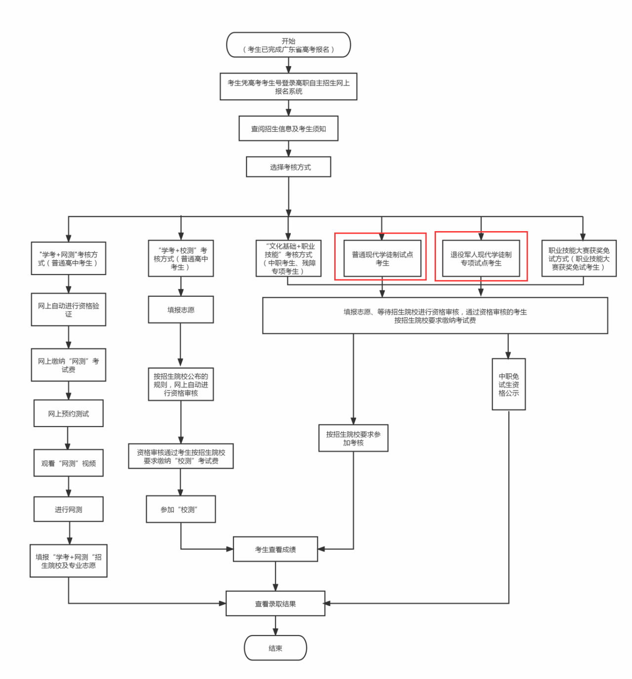 3、退役军人现代学徒制专项试点:招生对象为退役军人,考生应在志愿填报前,需由县以上退役军人事务部门出具《广东省退役军人现代学徒制身份核验表》(附件2),完成退役军人身份认定,并在报名时上传身份核验表。
