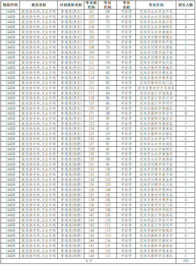 广东省夏季高考提前批专科卫生专项批次分组及计划数