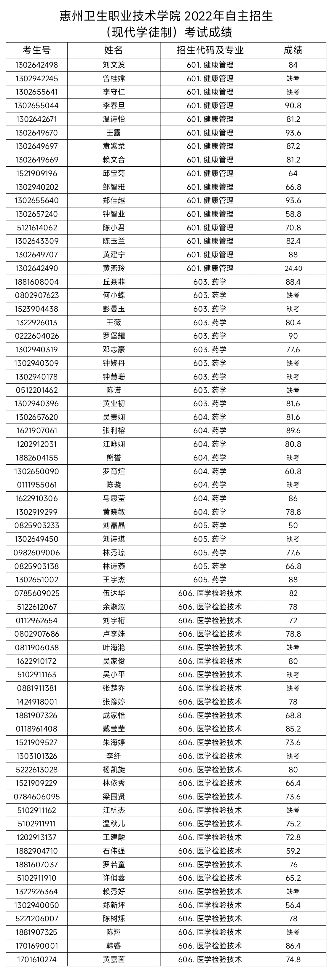 惠州卫生职业技术学院2022年自主招生