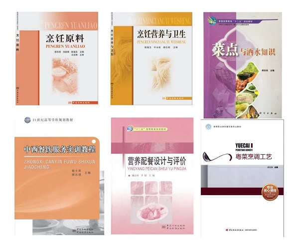 目前由烹调专业负责人总策划的烹饪类系列教材(35本),已在中国质检出版社在陆续出版中。其中《粤菜烹调工艺》教材荣获2015年中餐科技进步奖三等奖及2017年度中国轻工业出版社优秀教材,《粤菜烹调工艺》网络课程获得第二批中国轻工业“十三五”数字化项目立项。