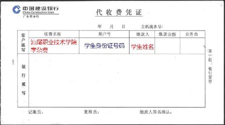 2、学生缴费时一定要按要求填写“代收费凭证”,如因收款单位、身份证号和学生本人姓名填写有误或不完整而导致缴费不成功的,责任由学生负责。